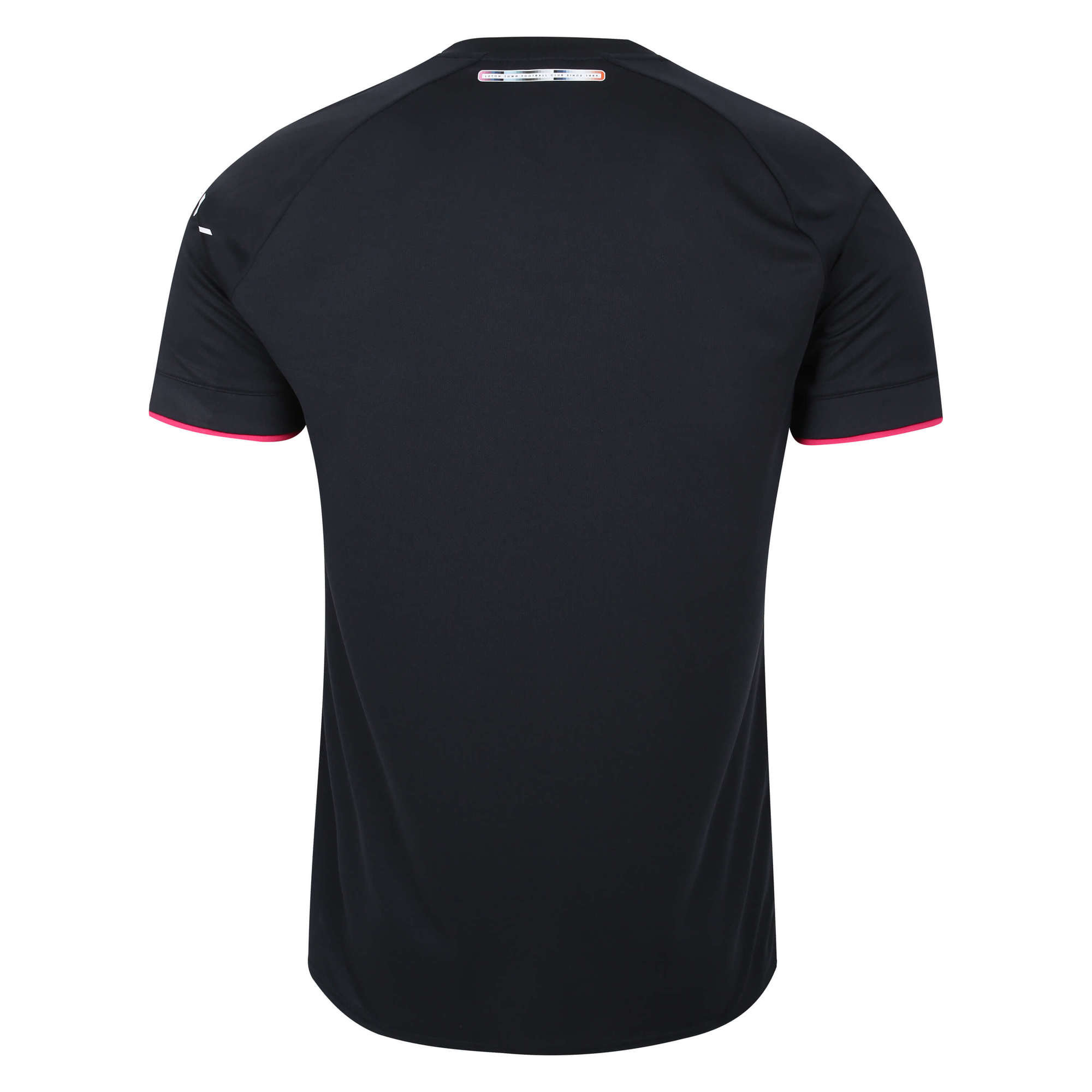 The jersey features a set-in sleeve design with a stylised panelled rib crew neckline, a graphic printed front panel, an embroidered stacked diamond, the club crest also embroidered, a dropped back hem, an official licensed label on the side seam, contrast-coloured rib cuffs, and the club's back neck sign-off.