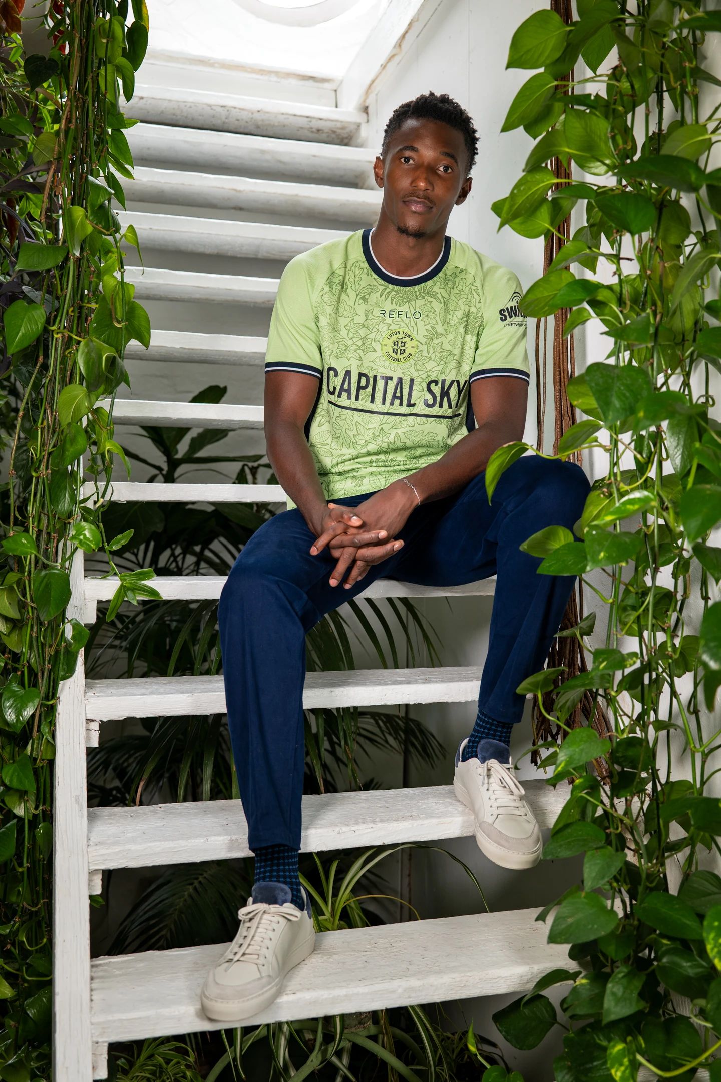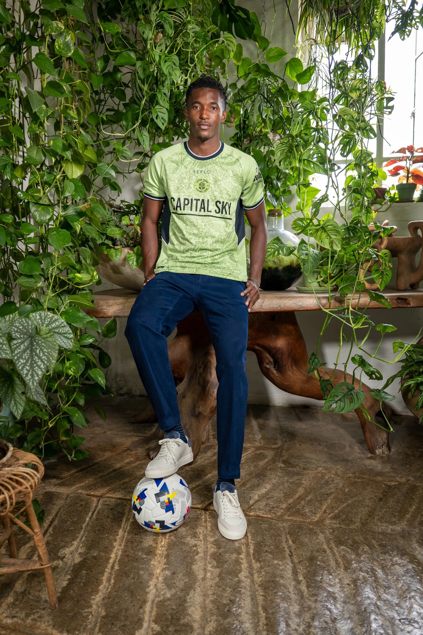 The shirt is finished with black detailing on the collar and sleeves, carries Capital Sky as the main sponsor, and will be paired with matching green shorts and socks to complete the full kit.