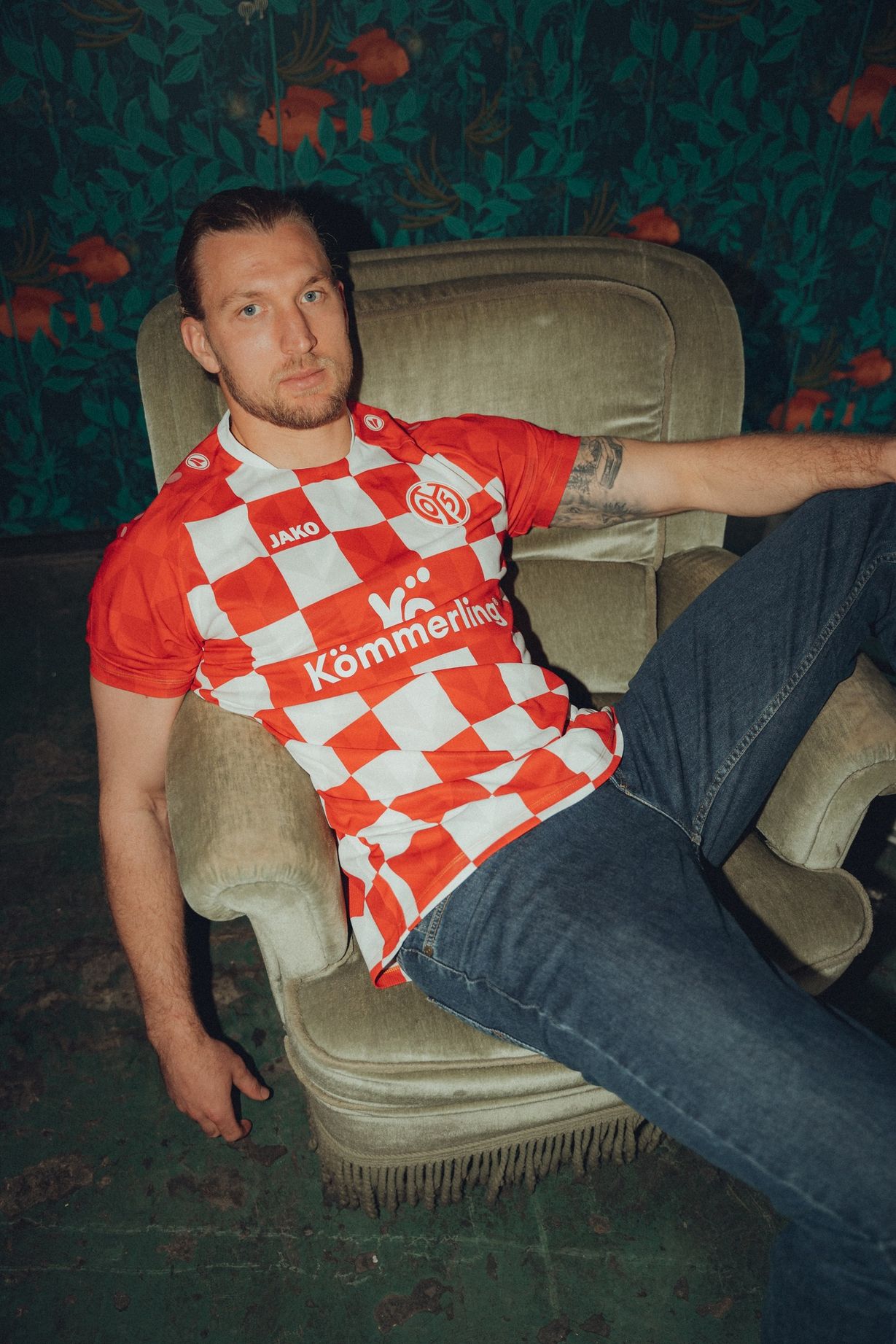The shirt, which nods to the equivalent the likes of Jürgen Klopp wore in the 1996-97 season, also carries Mainz’s city crest just below the neck on the largely plain back, and the kit will be completed with red shorts and socks.