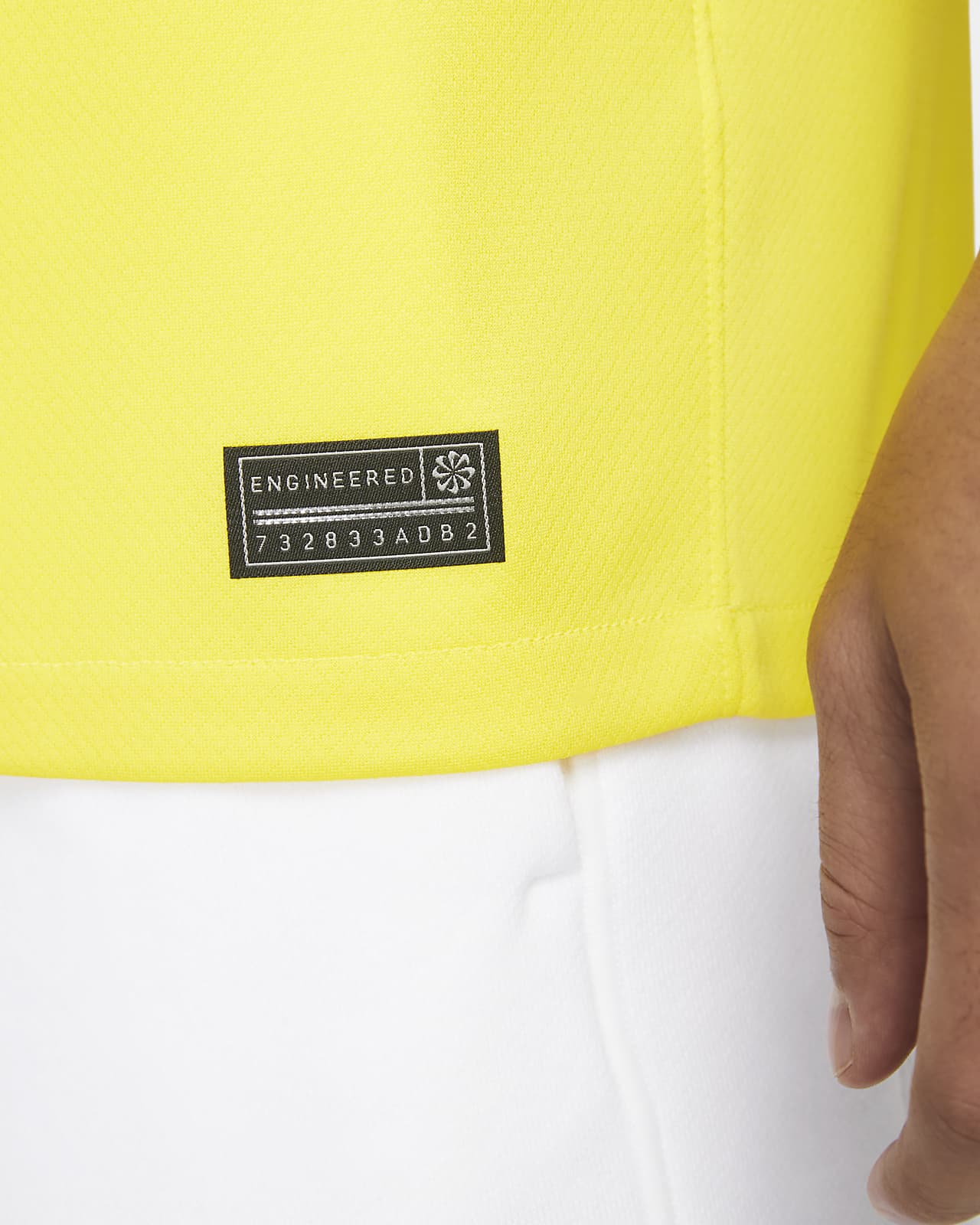 The international side’s 2022-23 primary release is in “Vibrant Yellow” and black, with the latter used for the US supplier’s branding, the contrast neck and for the detailing on the crest.
