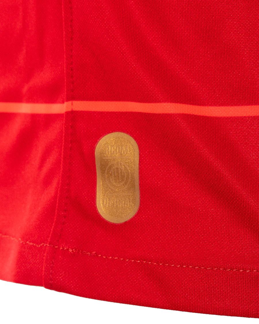 The 2023-24-season primary release for the Spanish La Liga side is in “University Red” with a peach-like tone providing thin horizontal stripes.