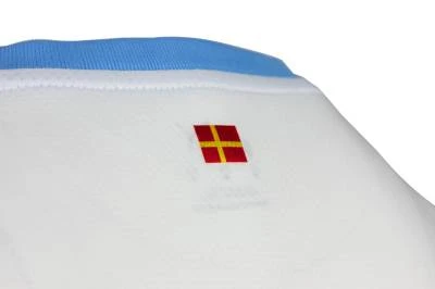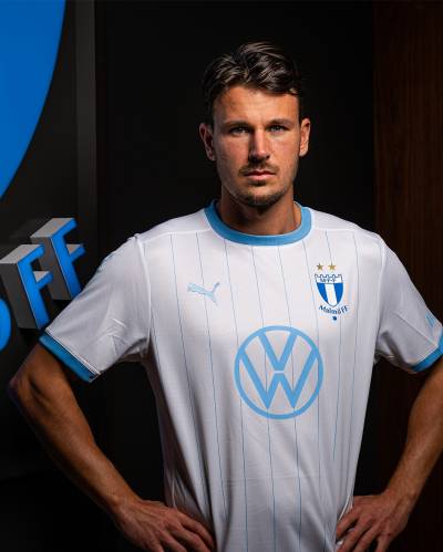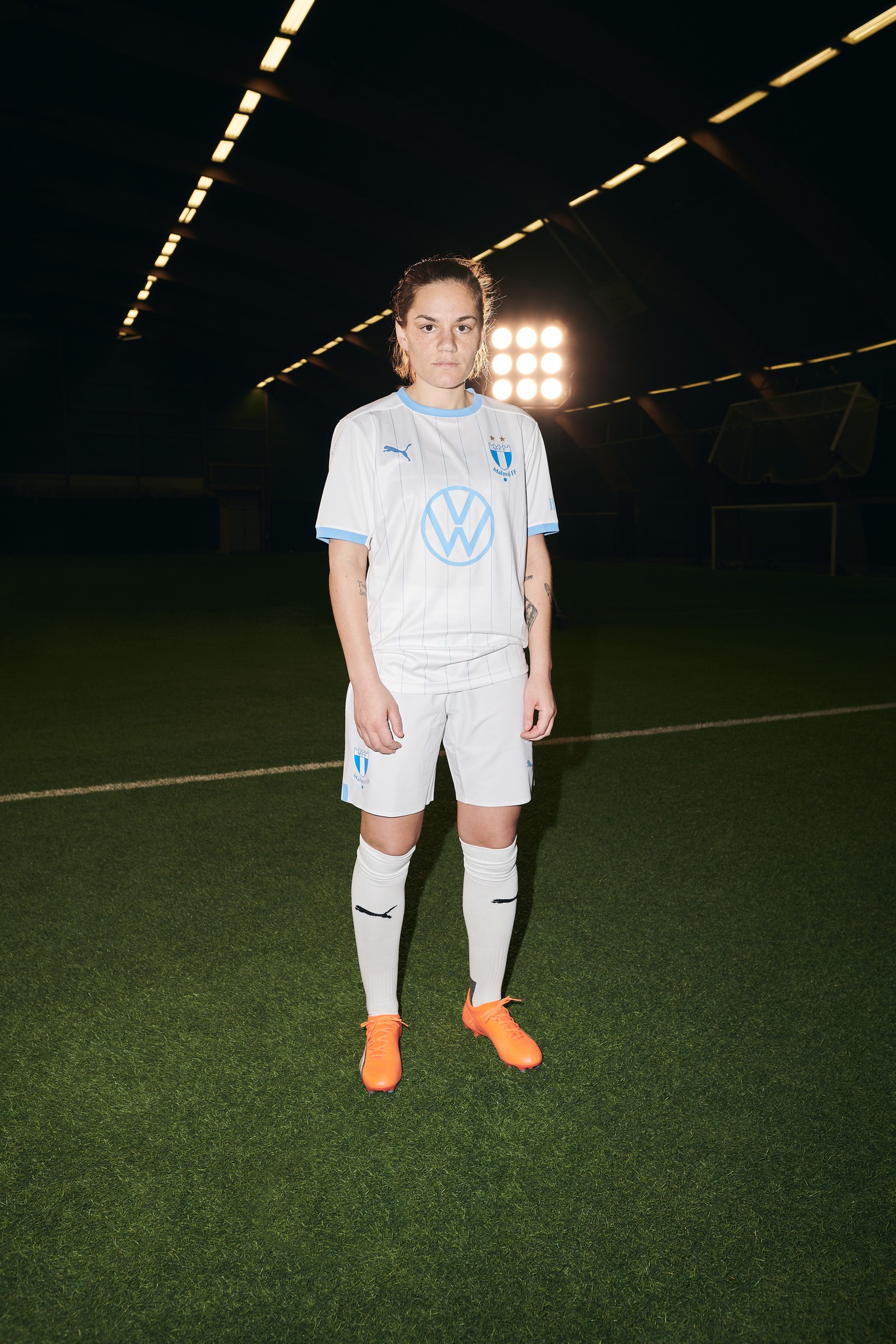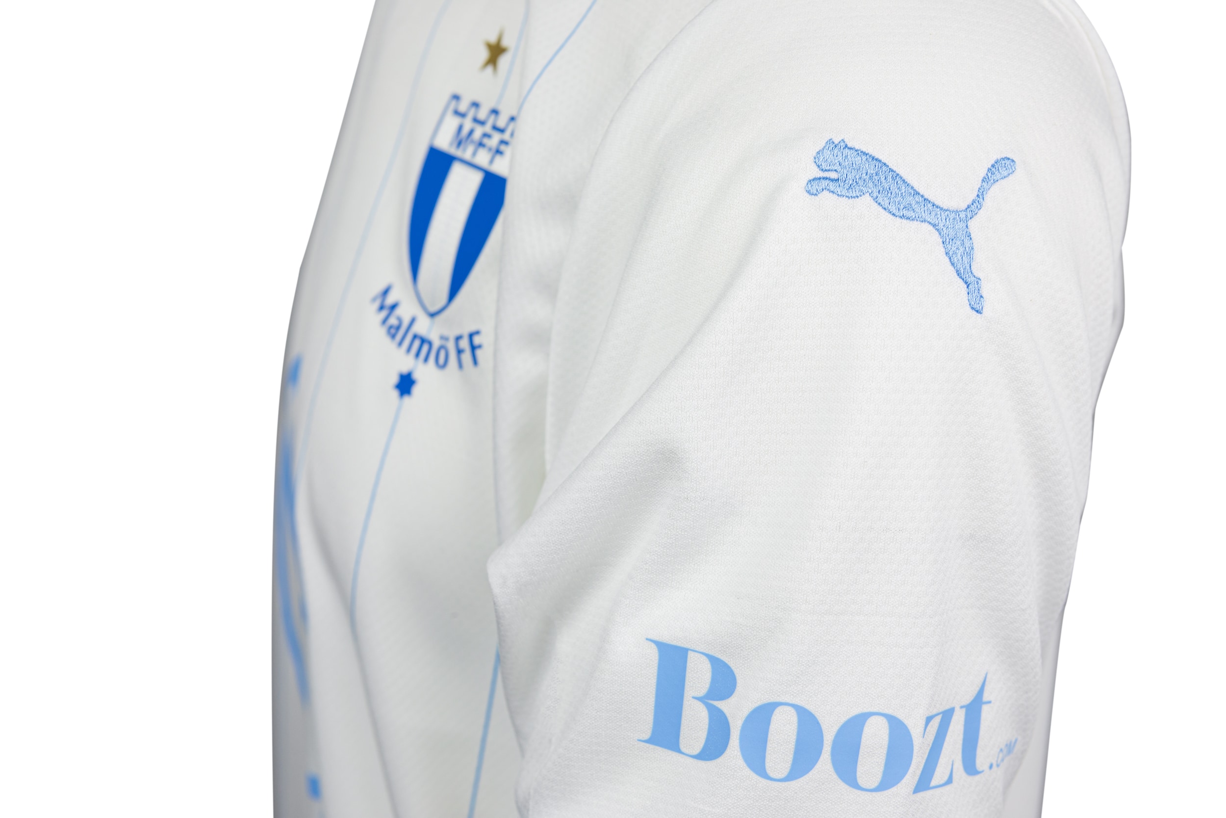 The jersey, which made its debut during the Swedish Cup quarter-final penalty loss against Djurgårdens, features a white base with sky blue pinstripe embellishments.