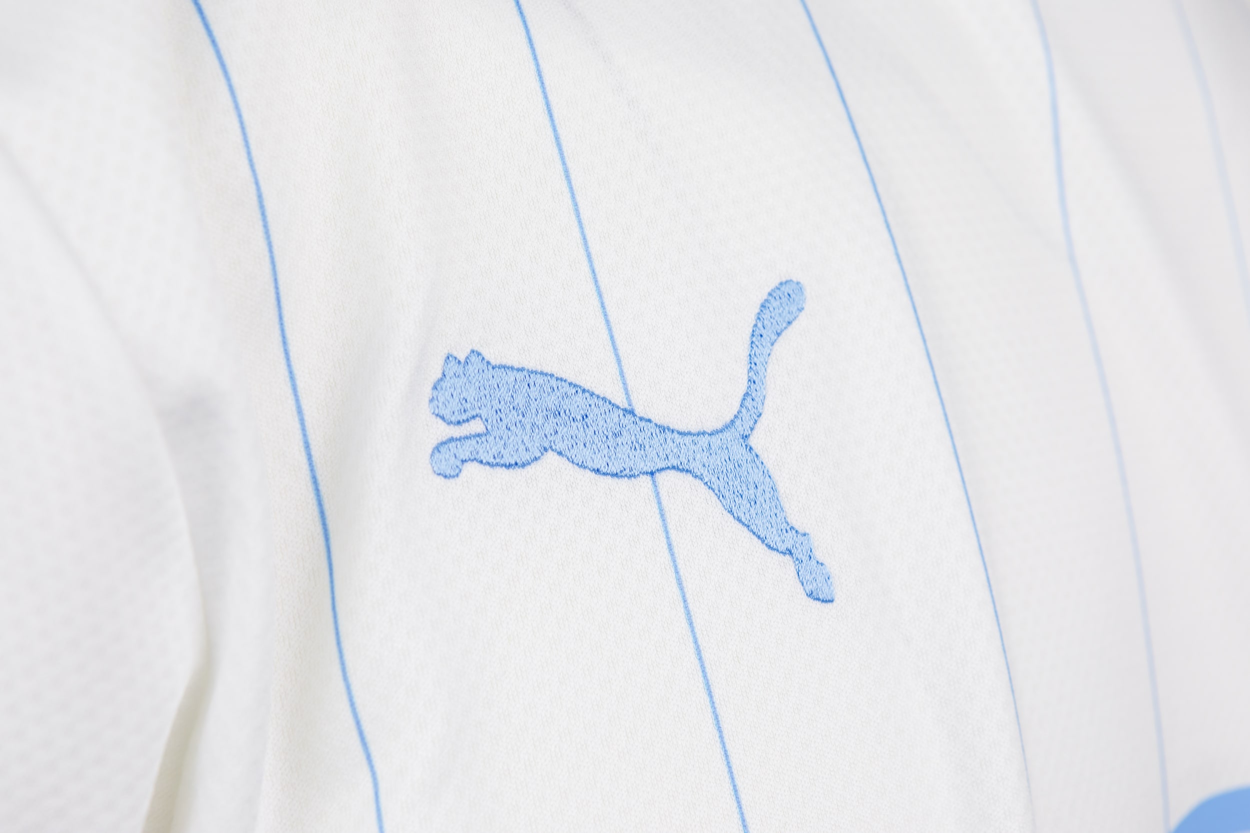The sky blue colour is also present on the trim, Puma logos, and branding from other partners.