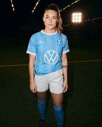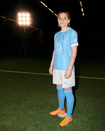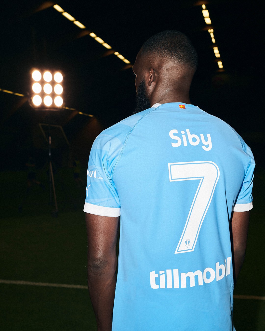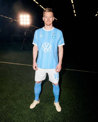 The Swedish Allsvenskan side’s kit is completed with white shorts and sky-blue socks.