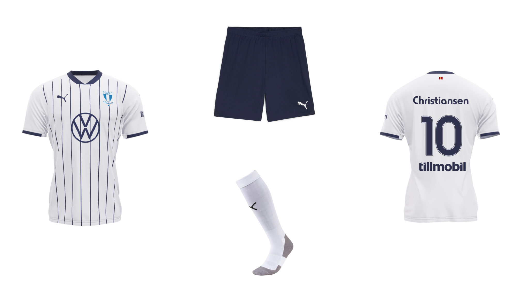 The new Puma secondary-change release for the Swedish Allsvenskan champions is in white with navy detailing - including the supplier’s logos and that of sponsor Volkswagen (VW) - and the crest is in standard colouring.
