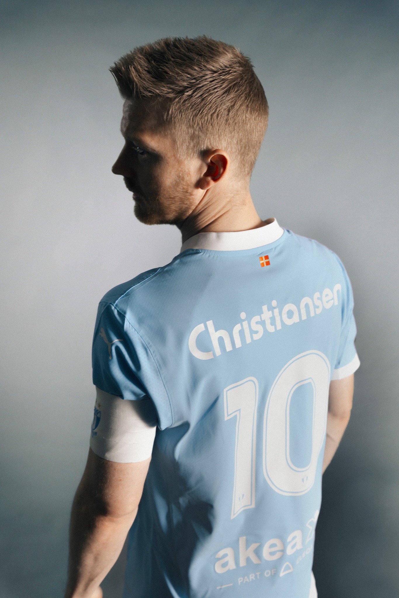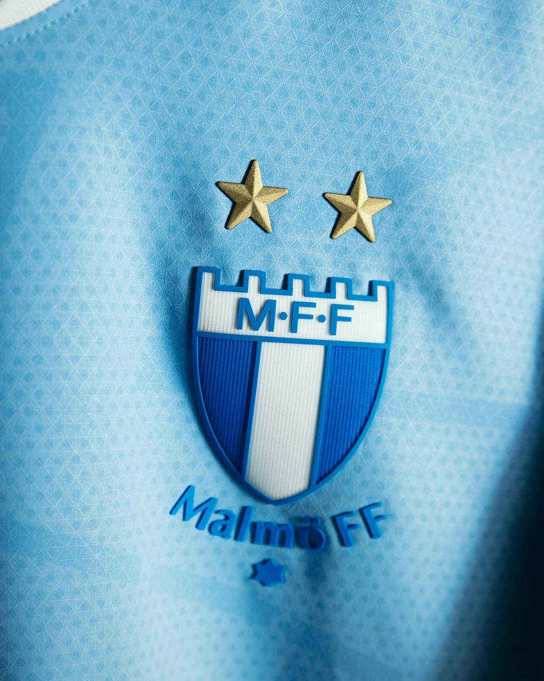 The light blue jersey features a pattern inspired by the layout of Stadiontorget, a public square in Malmö, Sweden, located between the old Malmö Stadion and the new Eleda Stadium. This pattern, which fans pass over on their way to the ground, is incorporated through a sublimated graphic on the shirt.