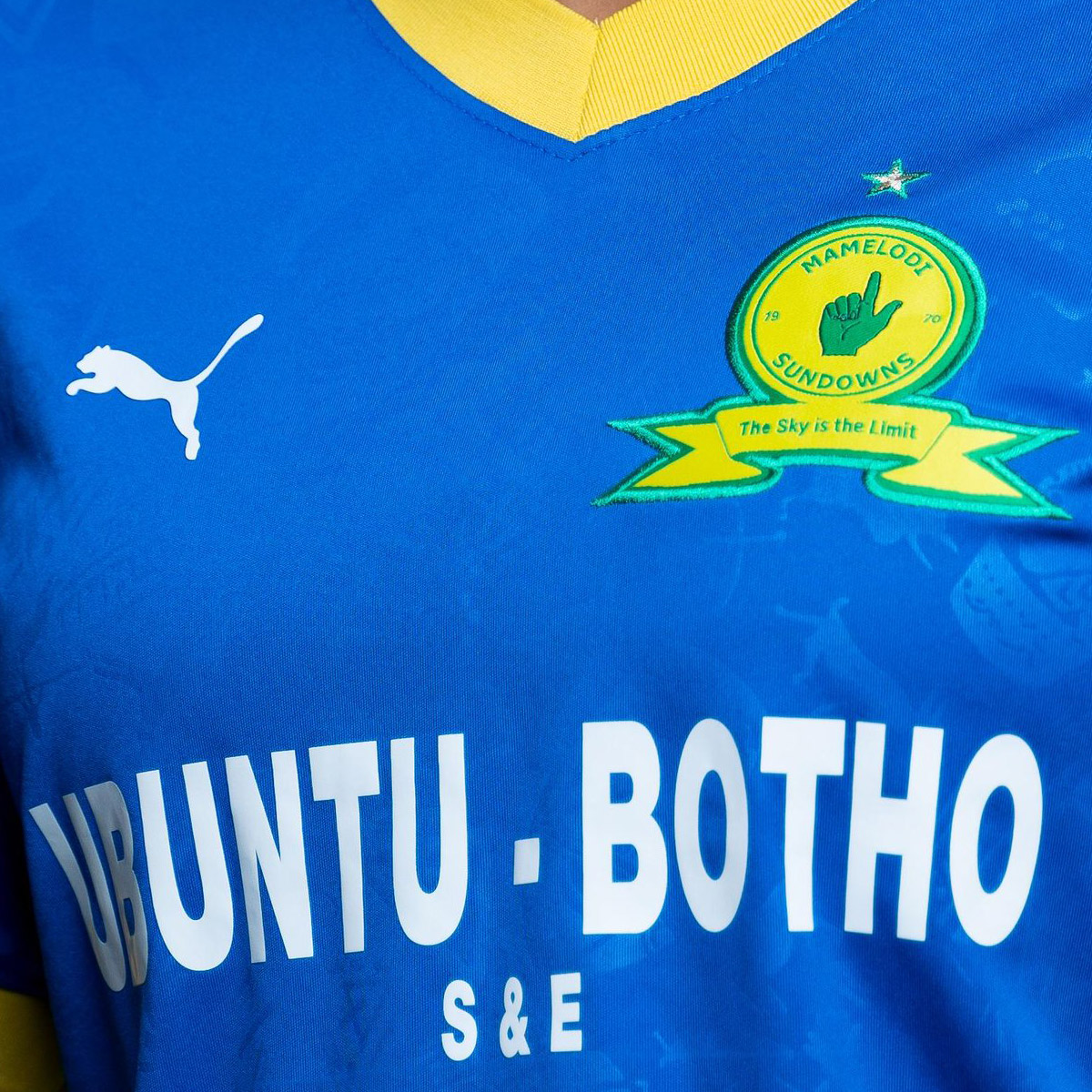 This nod to Sundowns’ adventures in continental football is also the logic behind the silhouette of Africa which appears, bisecting the club initialism, on the upper back.