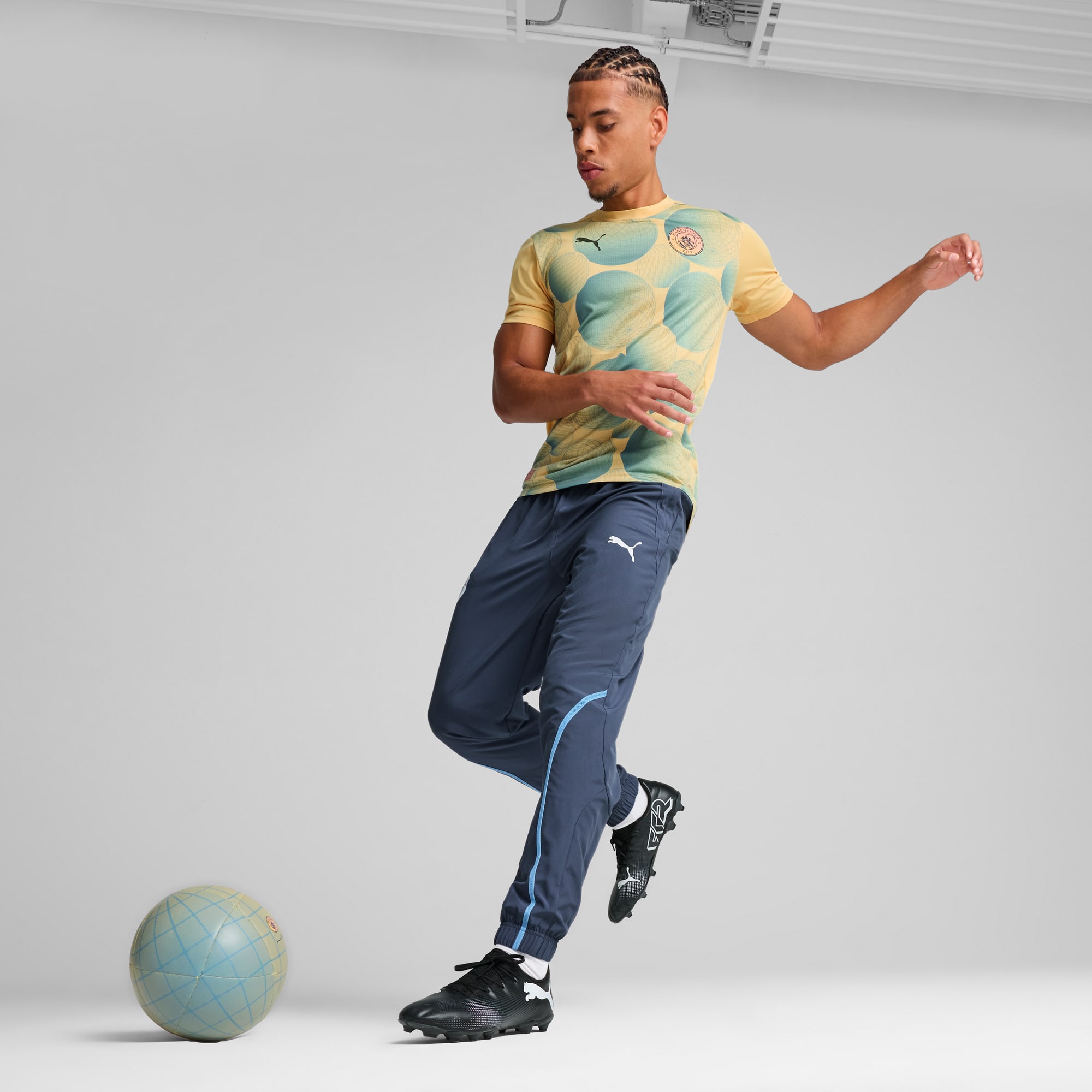 Released as part of the newly unveiled range in collaboration with Oasis musician Noel Gallagher, this is the new Manchester City “Pre-Match Short Sleeve Jersey”.