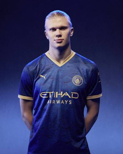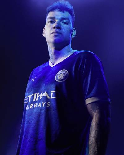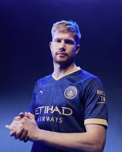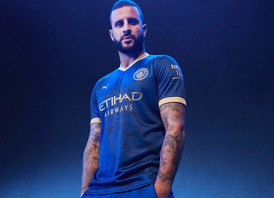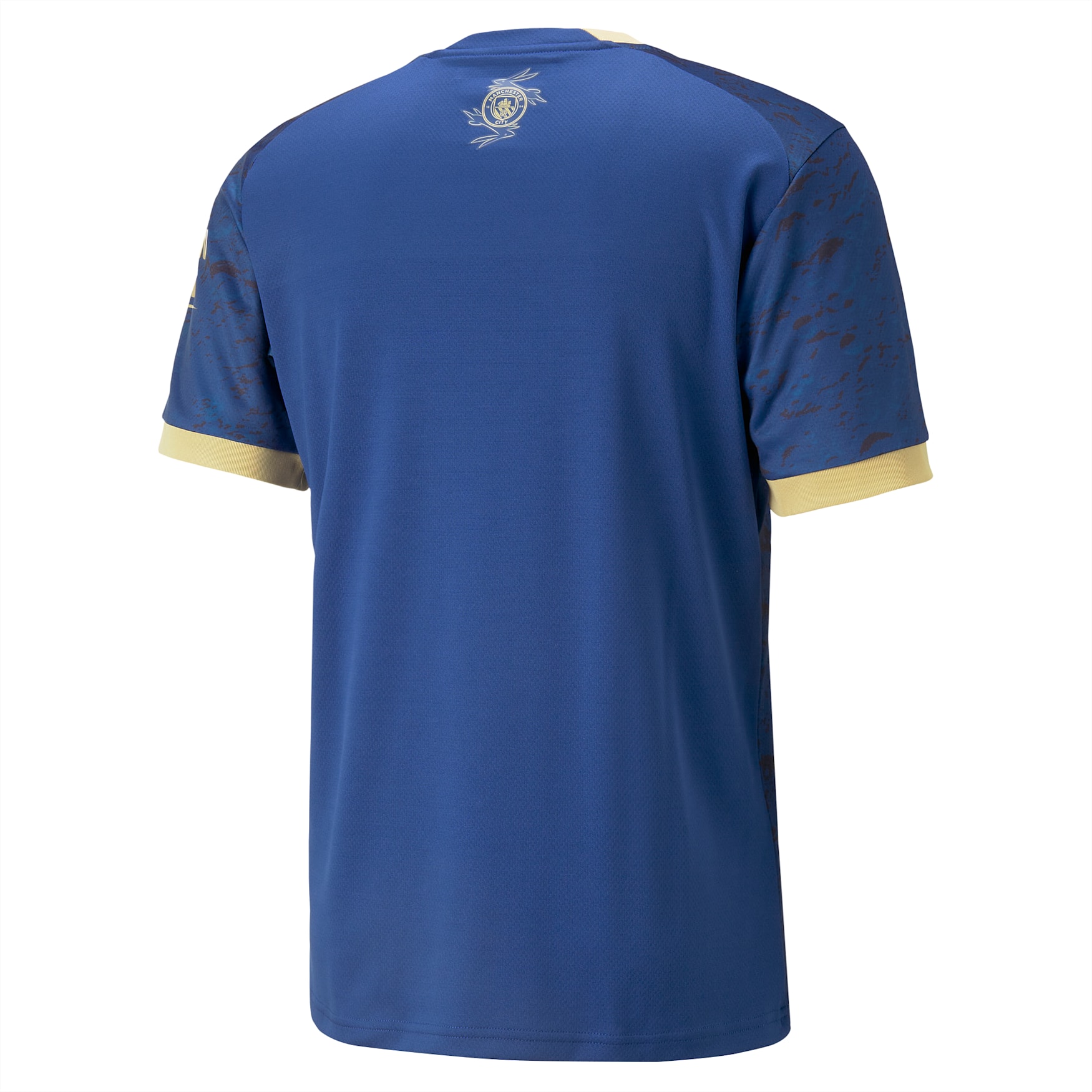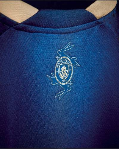 The Blazing Blue and Matte PUMA Gold jersey also features a unique sign-off on the neckline combining the Manchester City logo with bespoke interwoven rabbits.