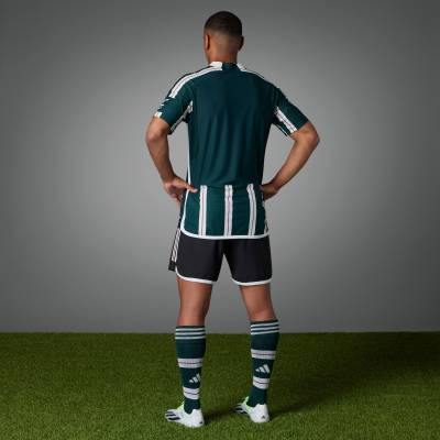 Taking inspiration from their early away strips, the kit introduces a modern take on the classic green colour, with maroon-red lines accentuating white blocks, reminiscent of the city's distinctive red bricks and architecture.