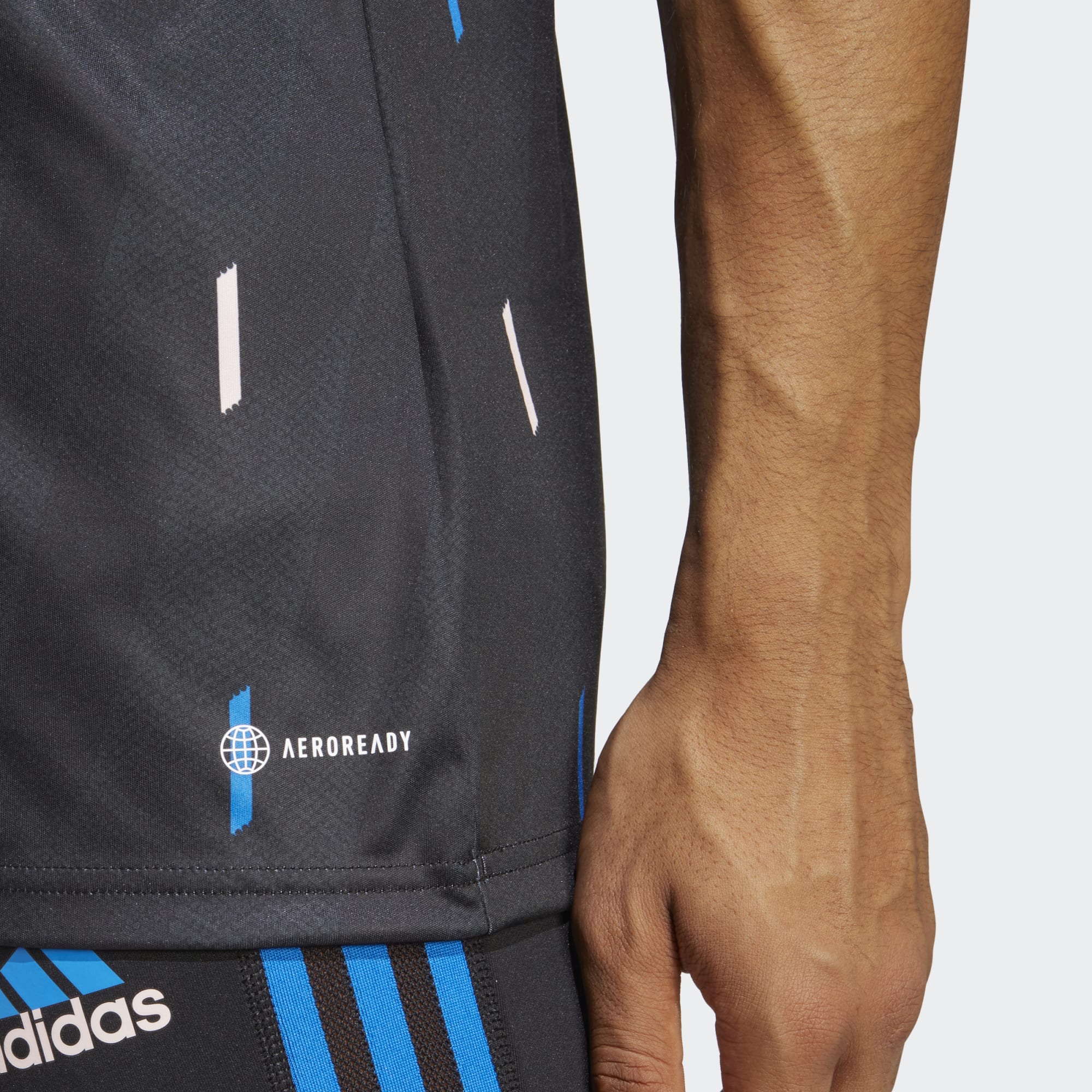 The adidas warmup shirt incorporates black, “Night Grey”, “Glow Blue” and “Icey Pink”, and includes the Red Devils’ training wear sponsor, Tezos, on a release made from recycled materials and boasting AEROREADY technology.