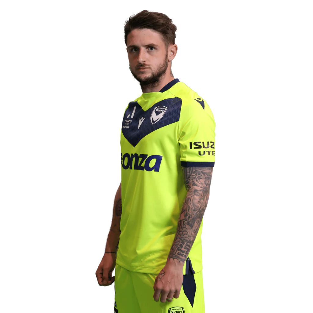 Conceived by fan Anthony Borg by way of a collaboration with graphic-design platform Canva, the 2022-23 change release for the Australian A-League side boasts a largely navy-blue chevron on a neon-yellow base - with the iconic feature far more prominent than on this season’s Home shirt.