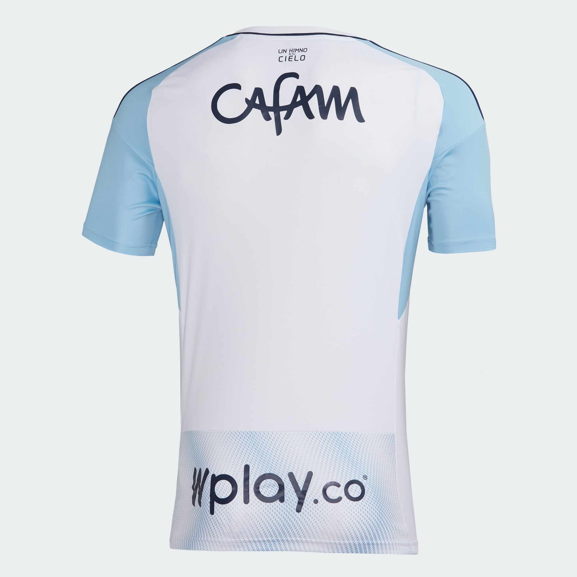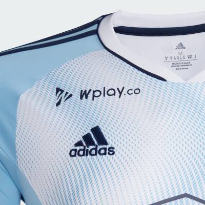 The Bogotá-based side’s 2023 release from adidas has slightly dated stylings which see a largely white patterned trunk combined with sky-blue sleeves - a nod to the local vista to honour the local support - and navy-/dark-blue trim.