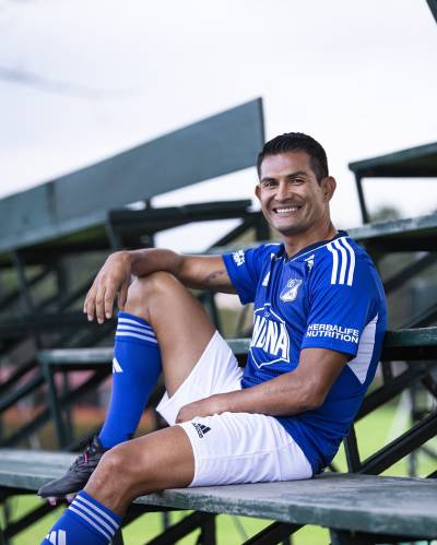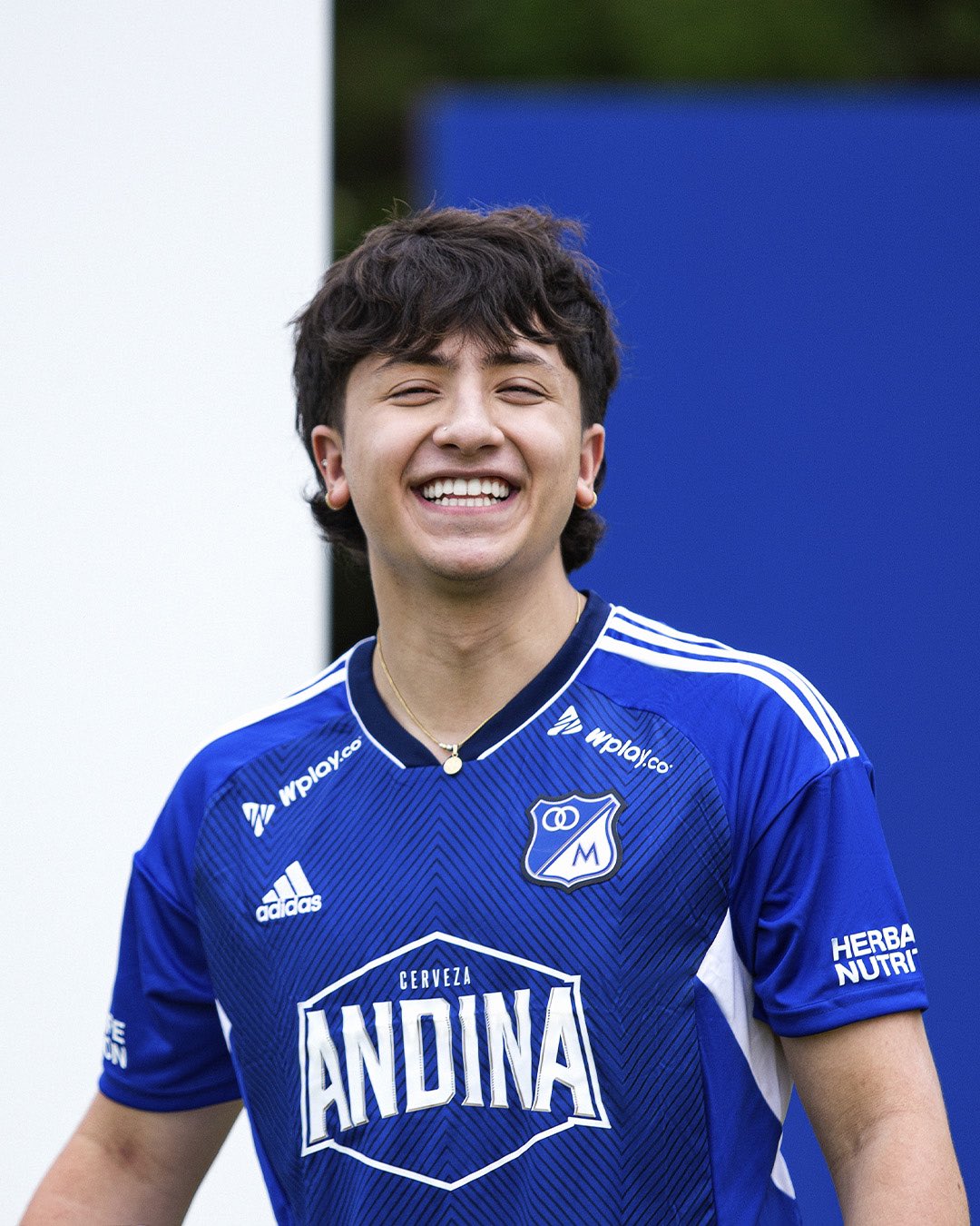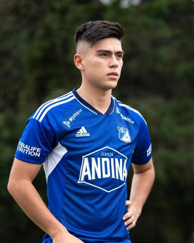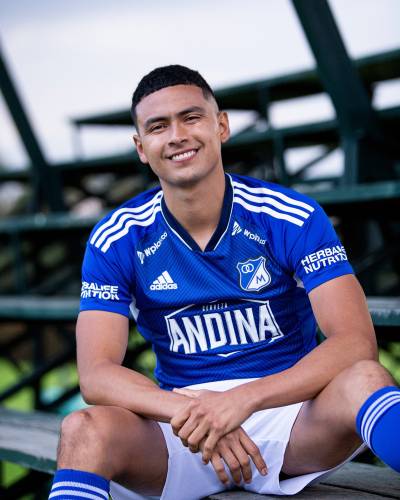 The new (to Millionarios) adidas design is in blue with a textured trunk and white trim - including the German supplier’s branding - and white partner logos.