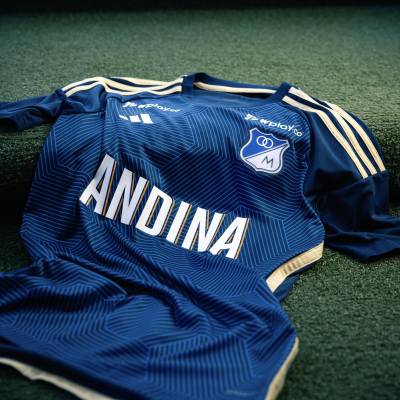 This gold is marketed as referencing the traditions and glorious history of the club, while partner logos appear in white and in white and gold and the first-choice kit for the Bogotá-based team will be completed with complementing shorts and socks.