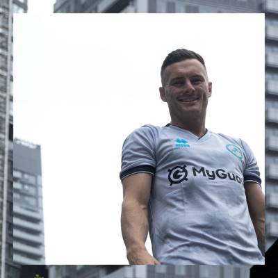The Erreà 2024-25-season secondary-change release for the London-based English EFL Championship side is in “Dockers Steel” [sic] (grey) with a base pattern, a crest in light blue and white, a supplier’s logo in light blue and trim and the main sponsor branding in black.