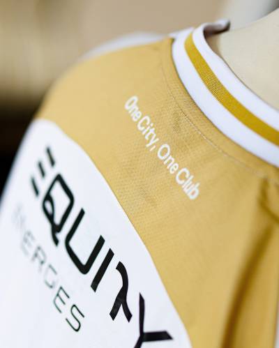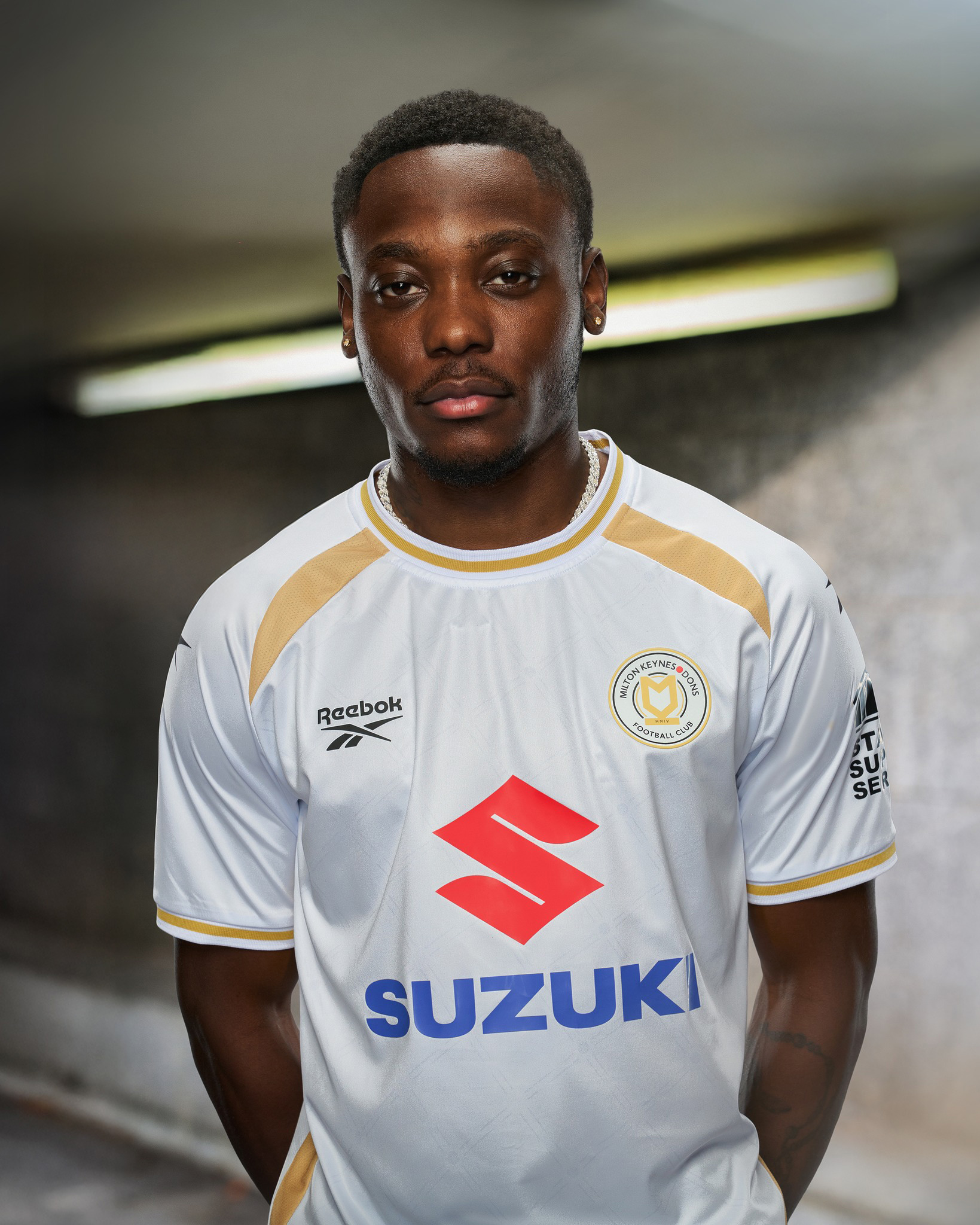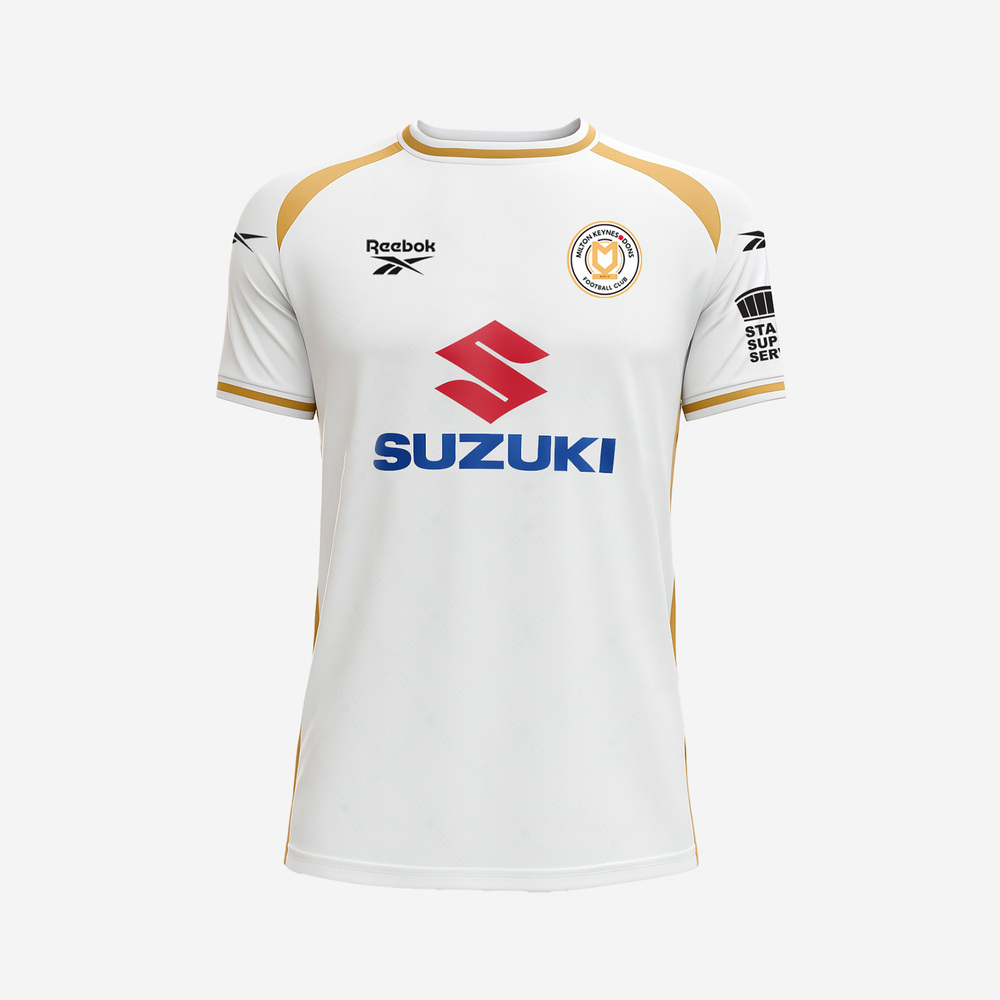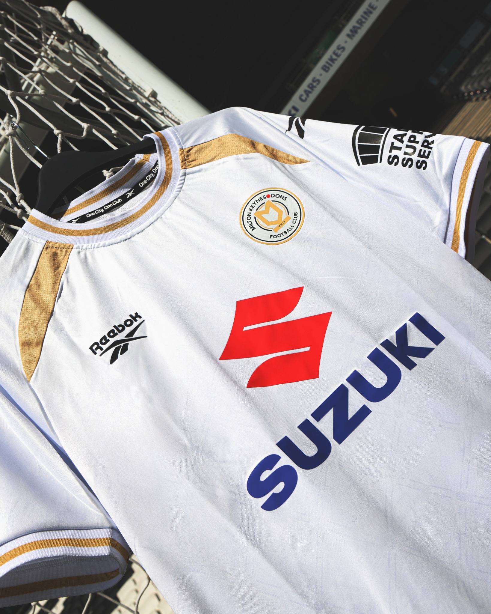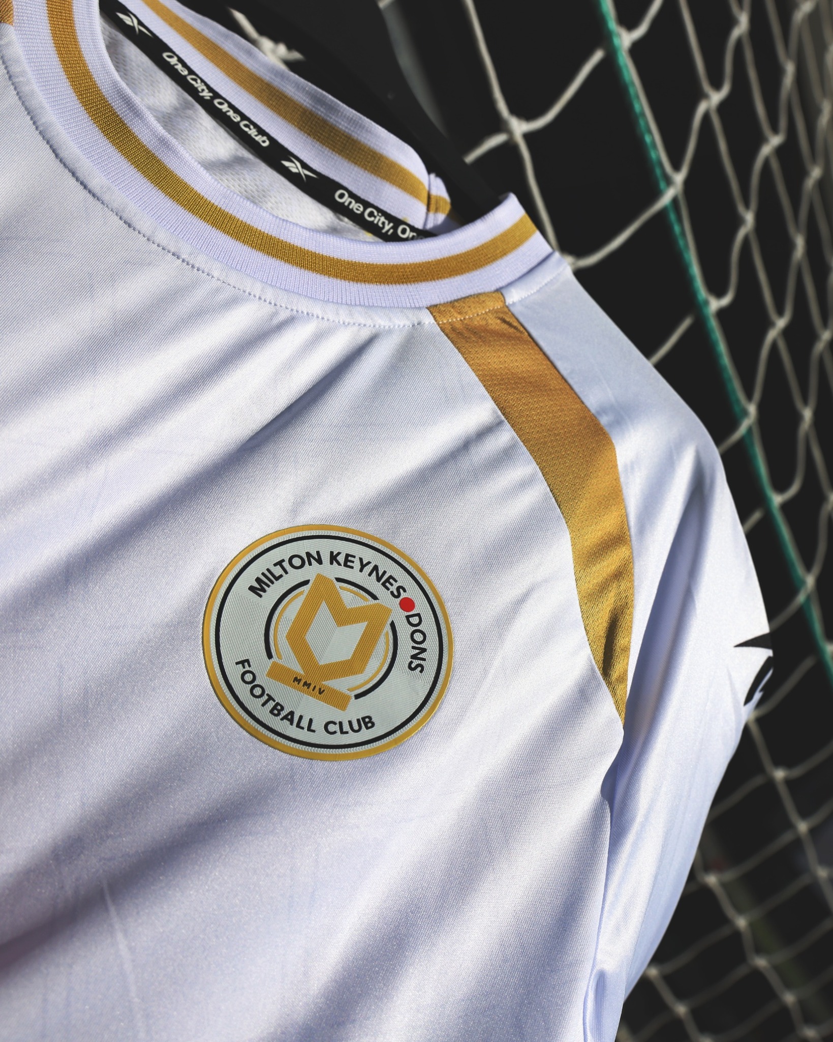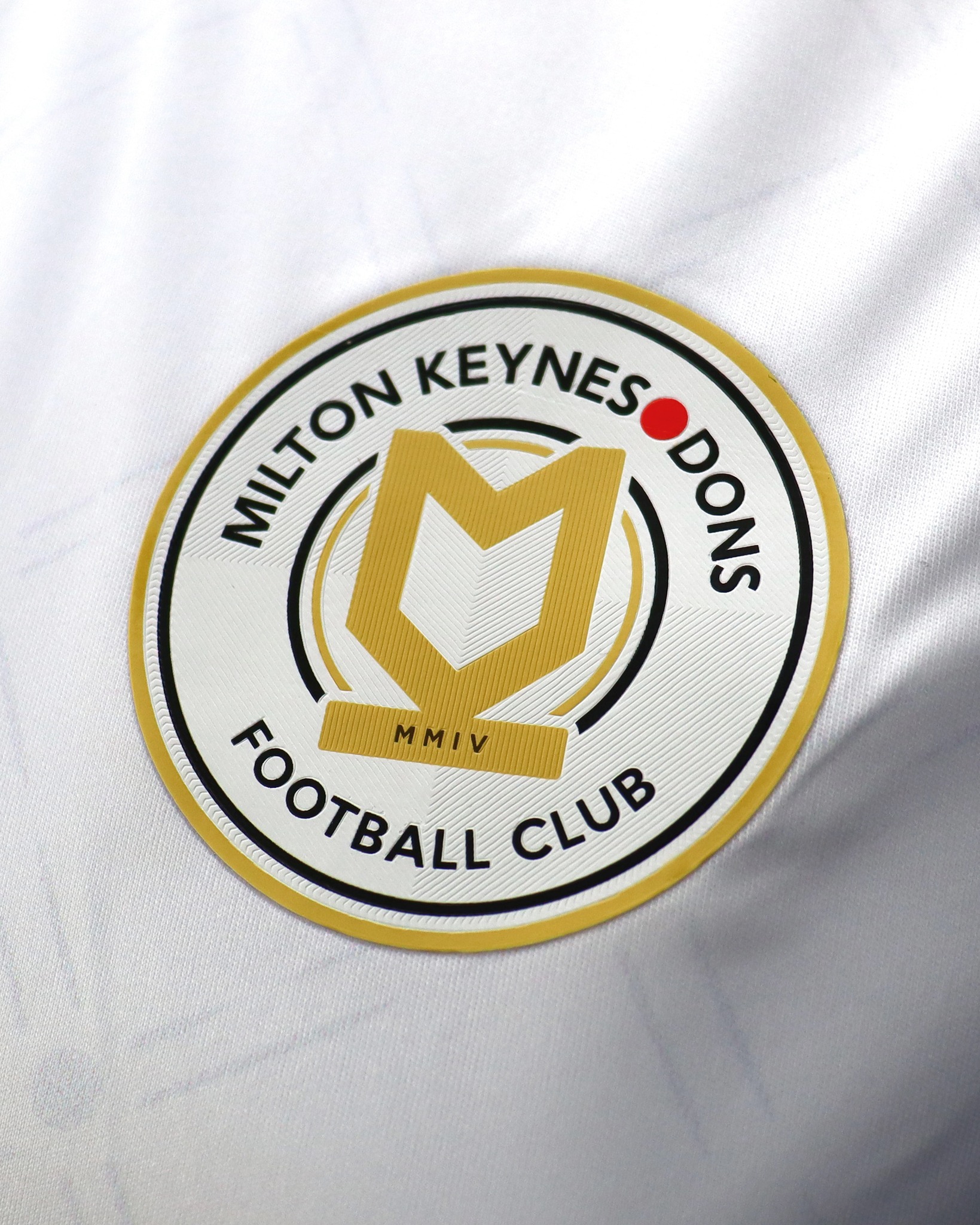 The new kit introduces a bespoke design in the club’s traditional white and gold, with a subtle embossed pattern across the shirt that reflects Milton Keynes’ distinctive grid layout.