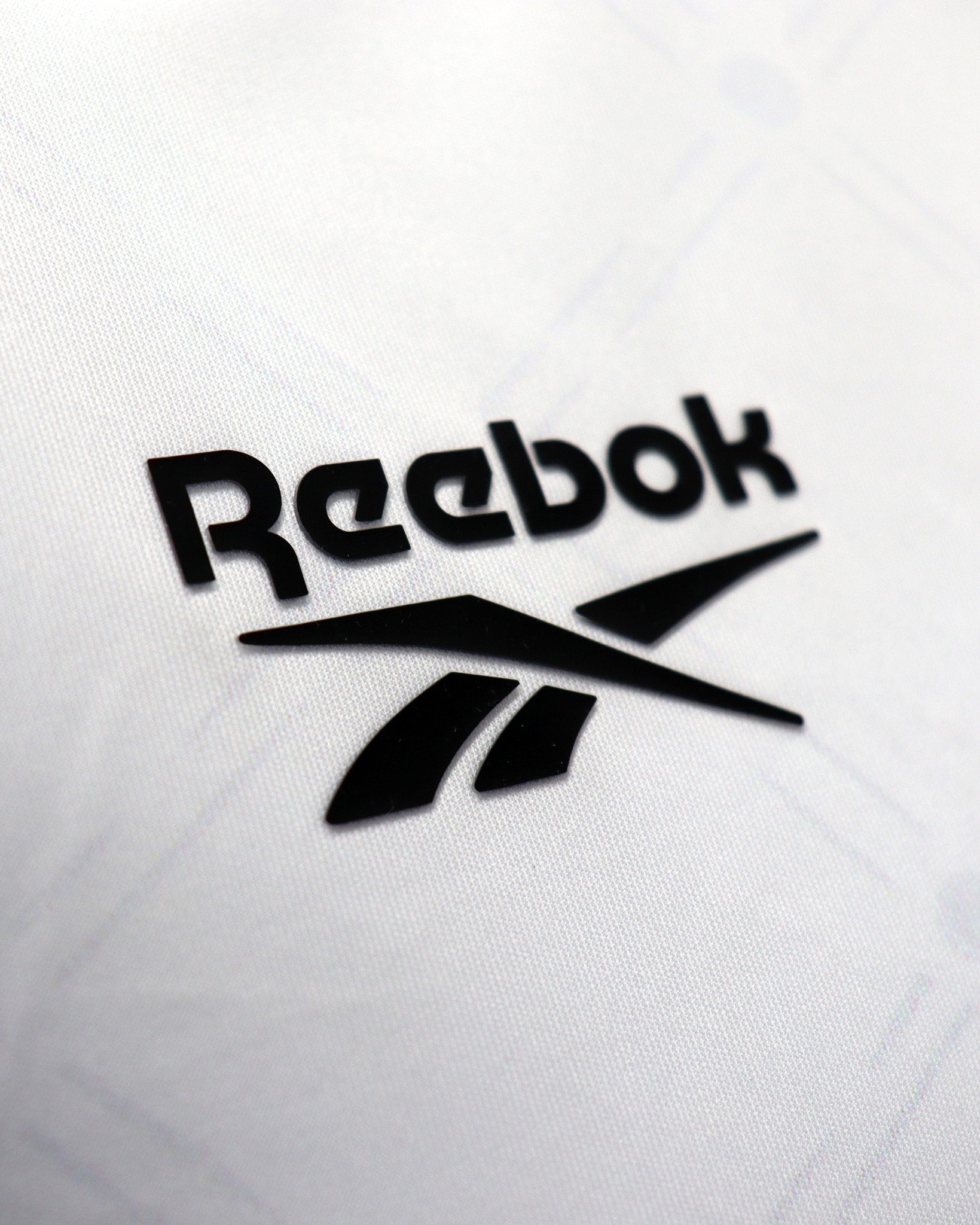 The updated club crest appears on the left chest, with Reebok logos featured on the chest, shoulders, and inner neck tape.