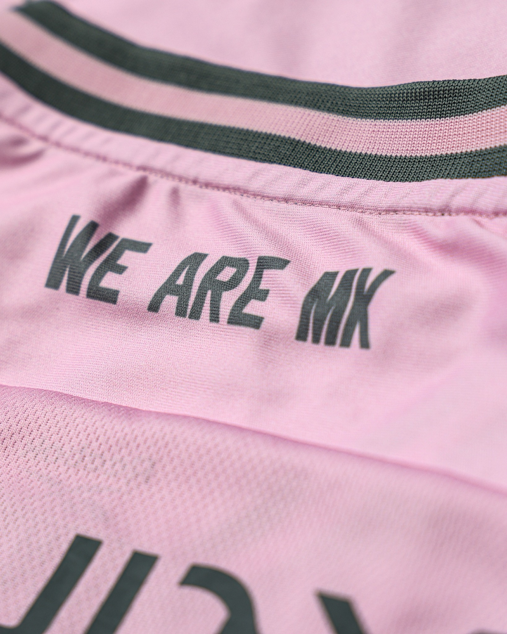 Inside the neckline, the club’s motto “One City, One Club” is repeated, and “We Are MK” is printed on the back neck. The club’s longstanding sponsor Suzuki features prominently on the front.