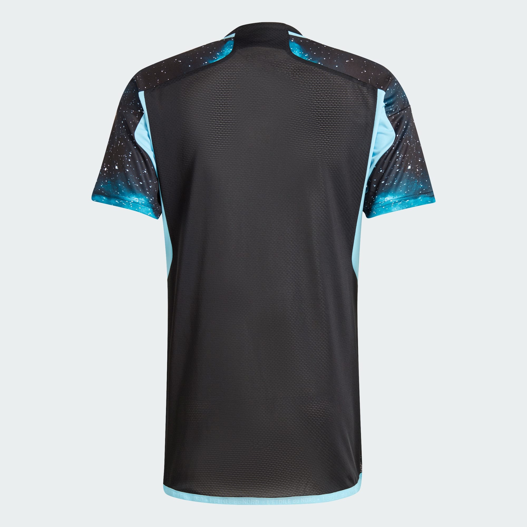 In a fresh twist from the previous year's design, the jersey's detailing includes the state motto, "L'etoile du Nord," transitioning from a rich black to sky blue, reflecting the club's identity. This blue taping runs along the bottom of the jersey and transitions into ventilated panels that elegantly frame the jersey number on the back, offering both style and functionality.