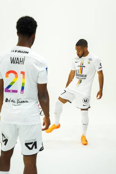 Worn with Away shorts and socks to form a nominally all-white kit despite the colourfulness of the endeavour, the shirt (and the shorts) also featured rainbow numbers in the weekend match against Lorient, as did the kits of all other French Ligue 1 teams in their fixtures.