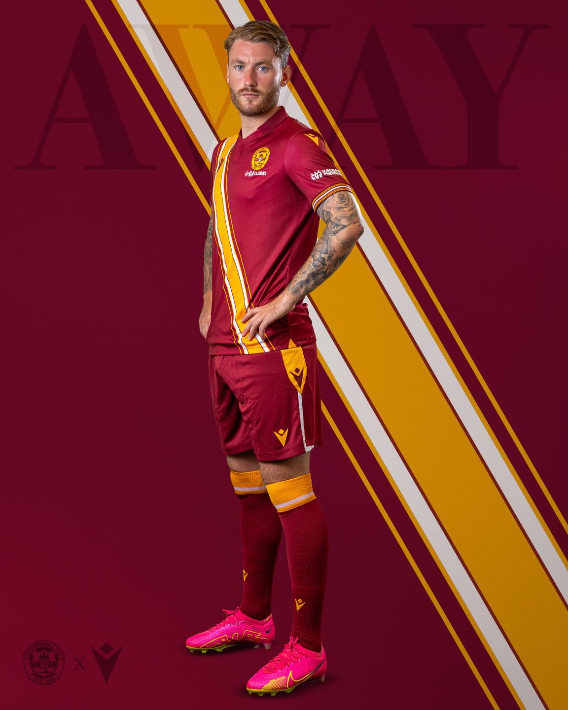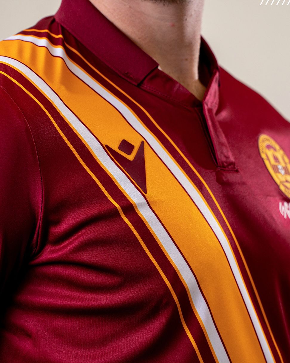 This year's away colours are a modern twist on a classic, taking inspiration from the iconic home kit worn in the 70s by Motherwell legends Joe Wark and Willie Pettigrew, featuring a claret sash from shoulder to hip.