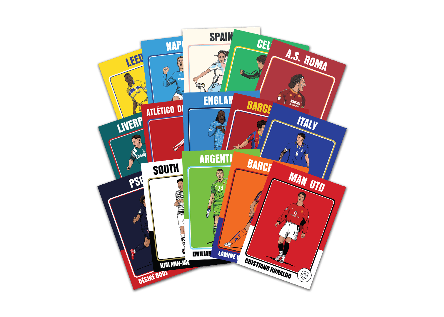 Selected boxes also include illustrated collector cards featuring players, nations or clubs, adding an additional element to the experience.