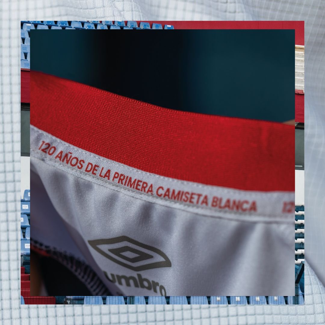 Celebrating Bolso’s first outing in white, 120 years ago, the new Umbro design notes the anniversary while also boasting debossed details of trophies secured in the meantime.