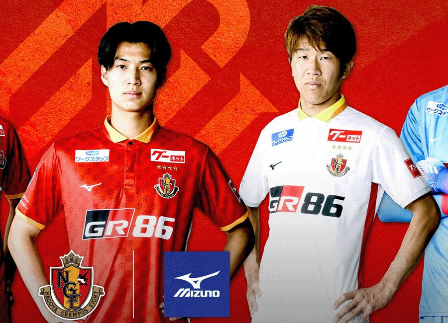 These are the new Nagoya Grampus (Eight) home (“1st”) and away (“2nd”) shirts by Mizuno.