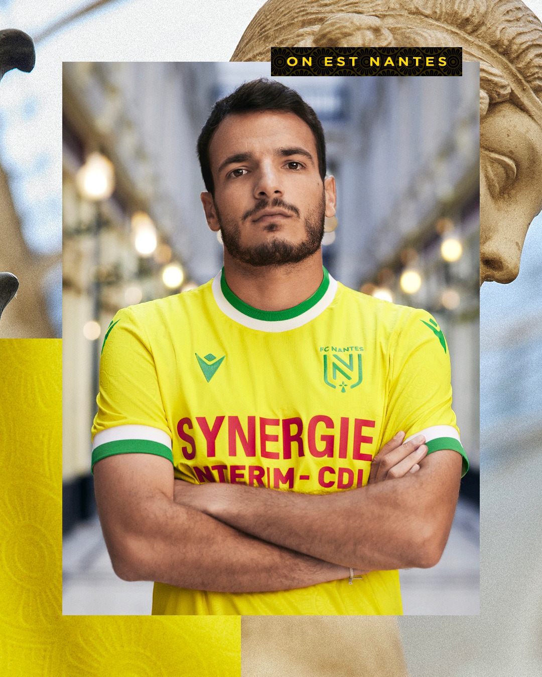 The French Ligue 1 side have a new yellow release as first choice this campaign, with a fabric featuring debossed flowers echoing those on the city of Nantes’ famous Passage Pommeraye shopping arcade.