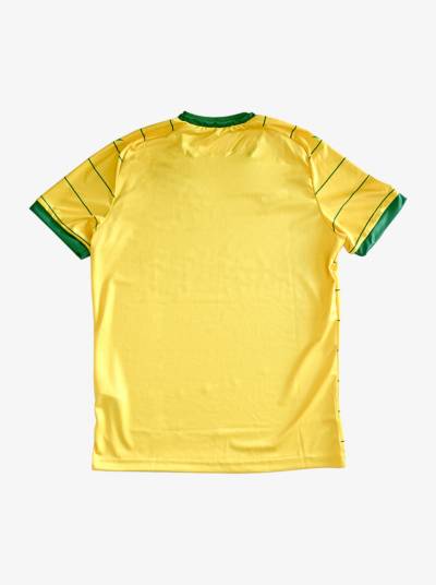 The yellow shirt features horizontal pinstripes in green, an anniversary crest and green collar, lined with a V-neck, symbolising the link between modernity and history.