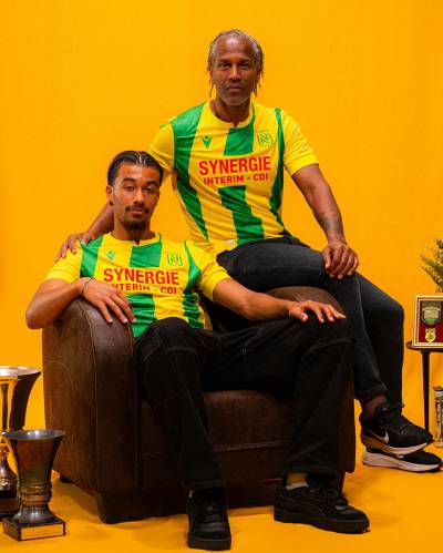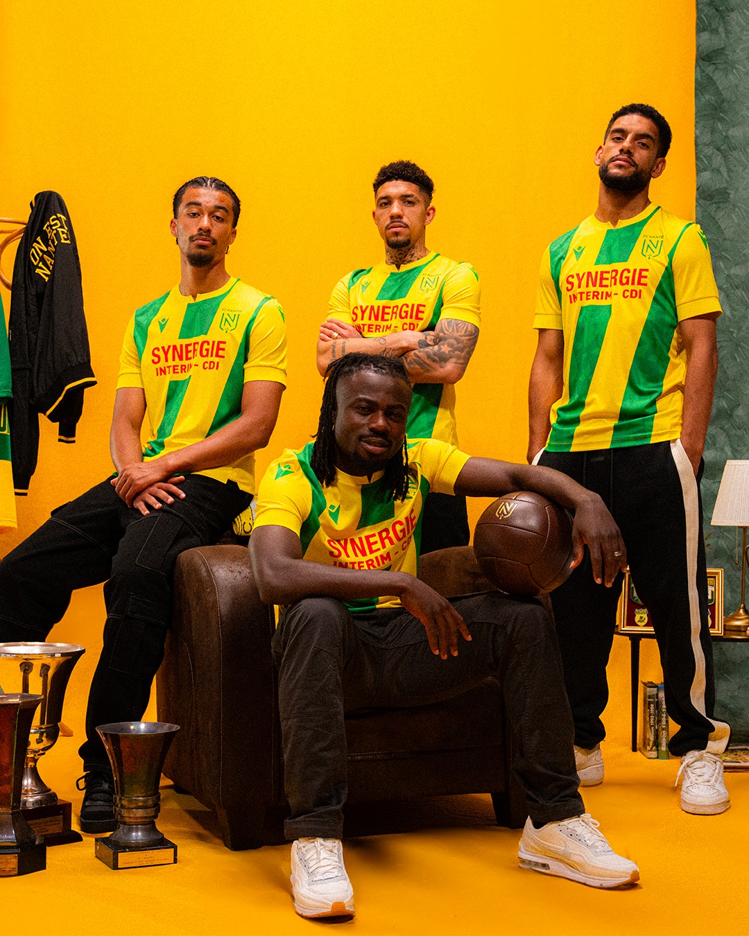 The French Ligue 1 side’s new primary release from Macron is in yellow with slightly askew/diagonal green stripes featuring imagery nodding to the city and club’s Breton (of Brittany) culture.