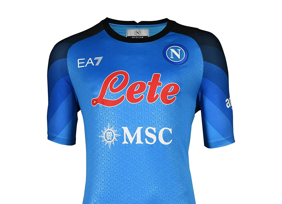 This is the new SSC Napoli Home shirt, carrying the branding of EA7 (Emporio Armani).