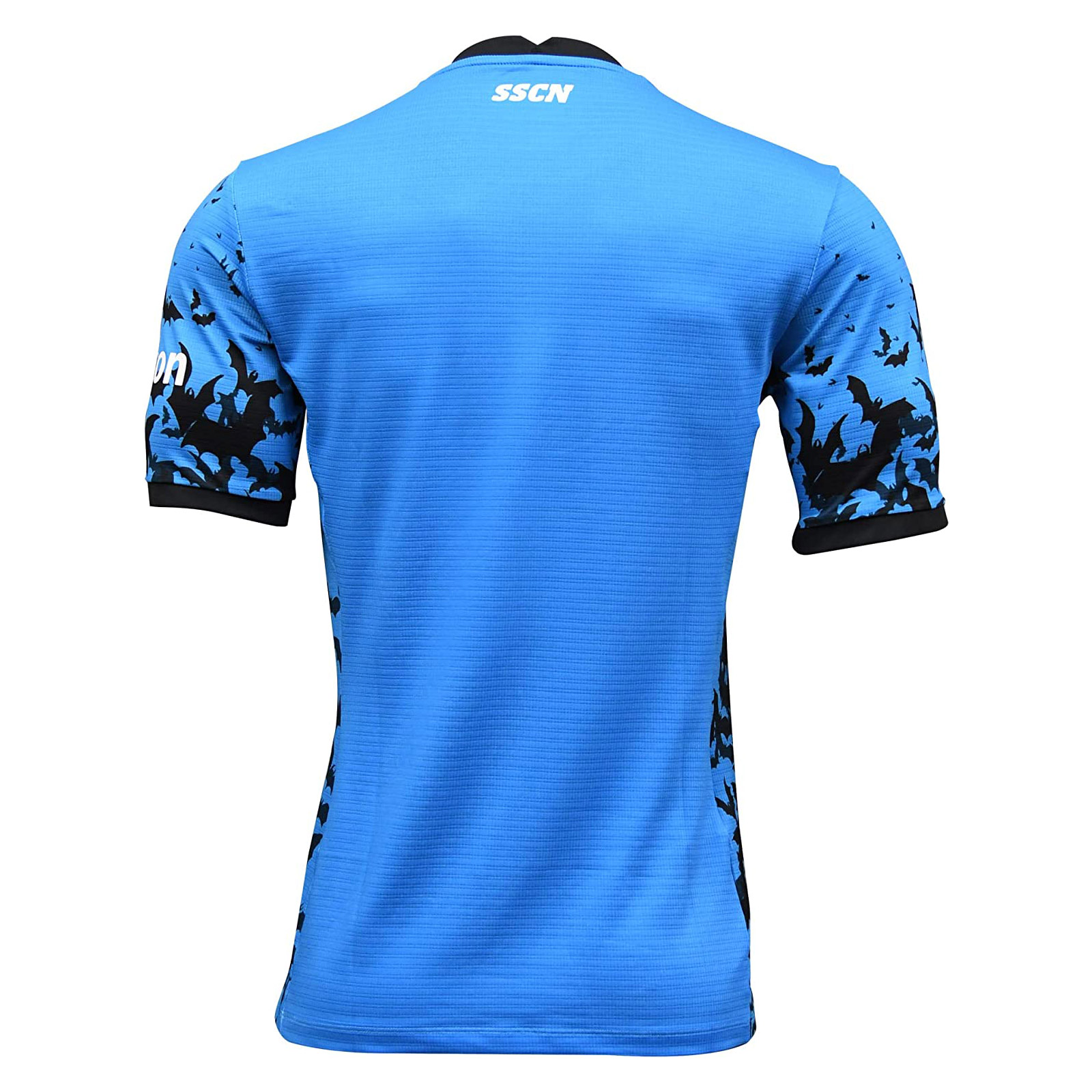 The latest EA7/SSC Napoli shirt features a sublimated graphic of bats to recall the Halloween celebration. The SSCN lettering is featured on the back of the neck.