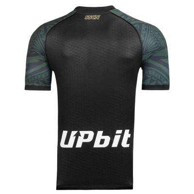 In black with tattoo-style Māori patterning, the EA7-branded secondary-change release for 2023-24 has gold detailing (befitting a champion).