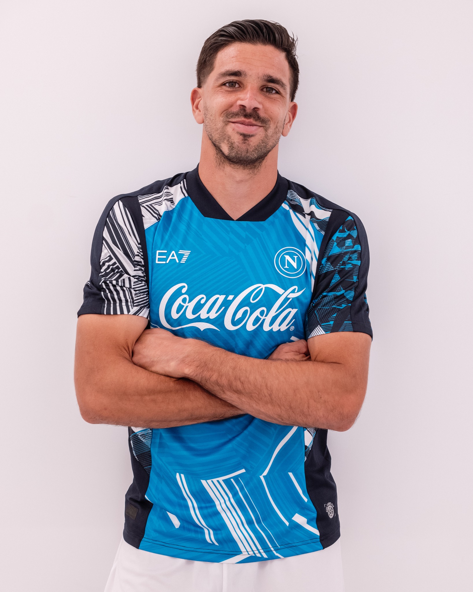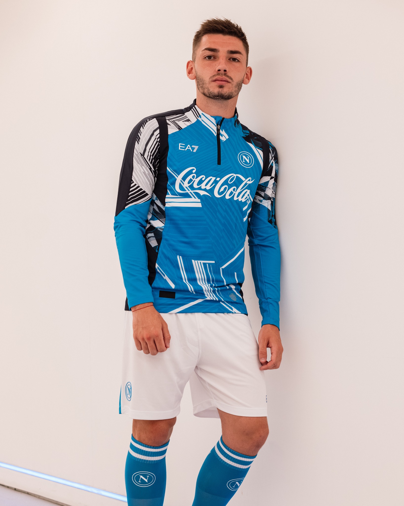 This backward nod - particularly to the glorious latter 1980s and early 1990s - is combined with a low profile crest, the “EA7” branding of official technical sponsor Emporio Armani and the iconic logo of training wear partner Coca-Cola, all in white.