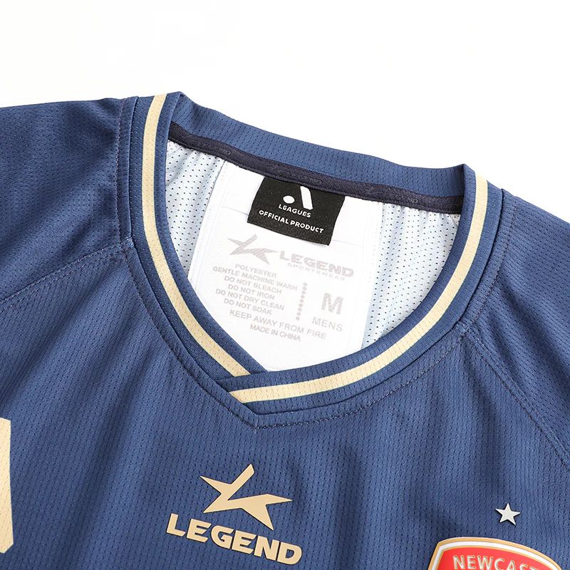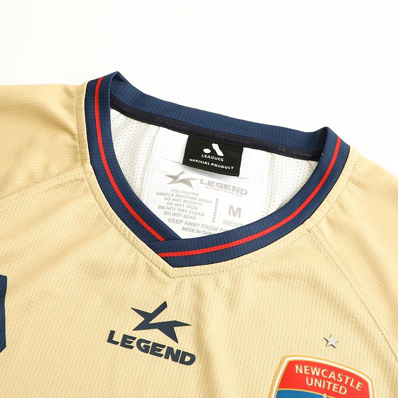 The Newcastle Jets jerseys from Legend Sportswear showcase a high-quality silicone club badge, embroidered logos, sponsor logos, and an authentic locker tag.