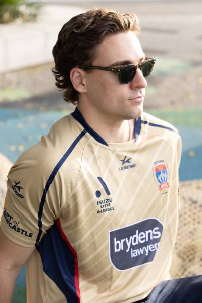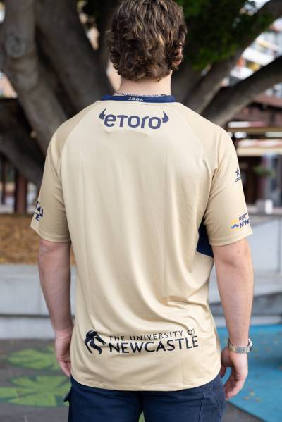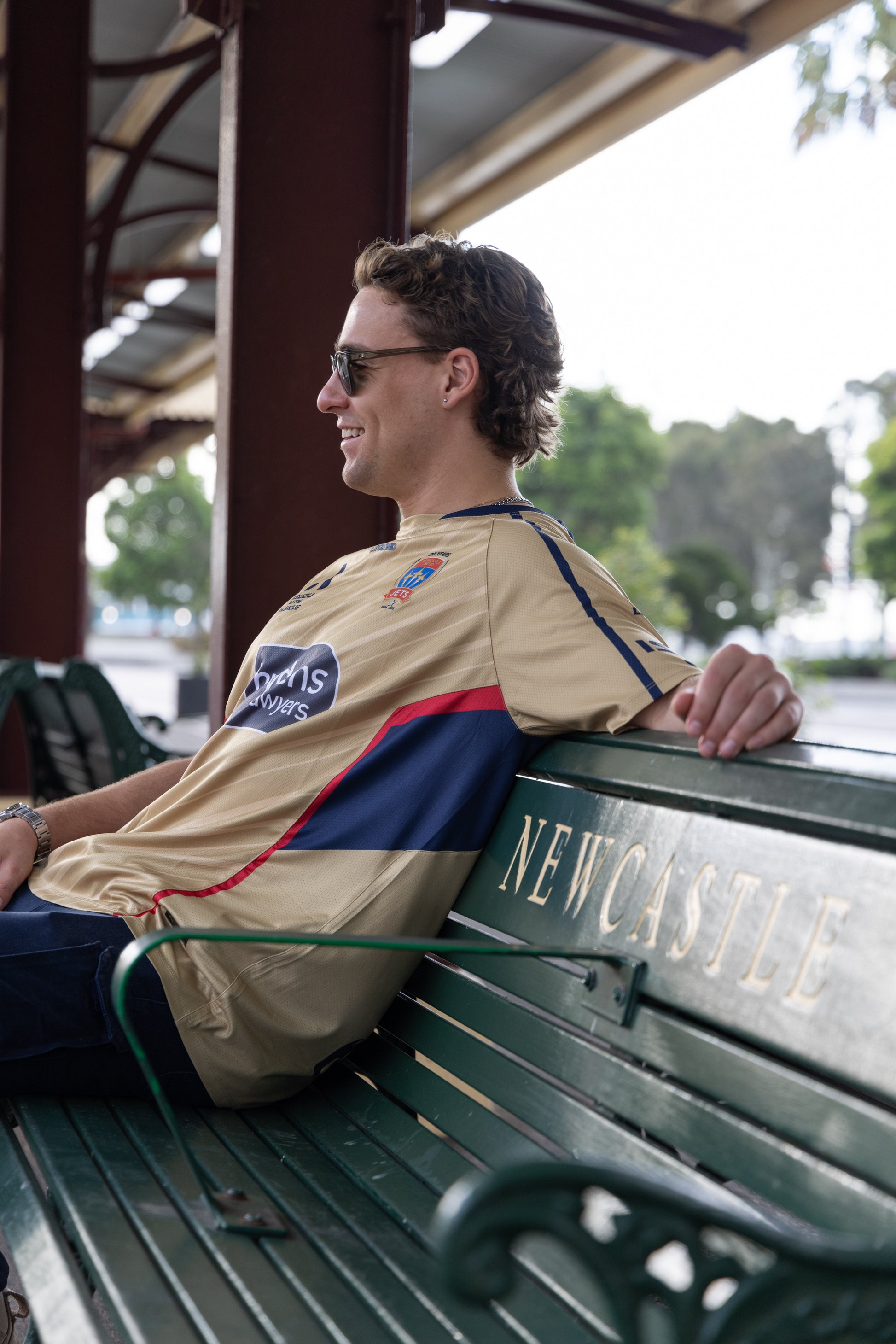 The club’s 20th-anniversary crest is featured in silicone on the chest, paired with sponsor logos in navy and white accents. A detail on the collar reads "1884," paying homage to the early origins of football in Newcastle, Australia—a region where the sport began to thrive in the late 19th century, influenced by European settlers and coal industry workers.