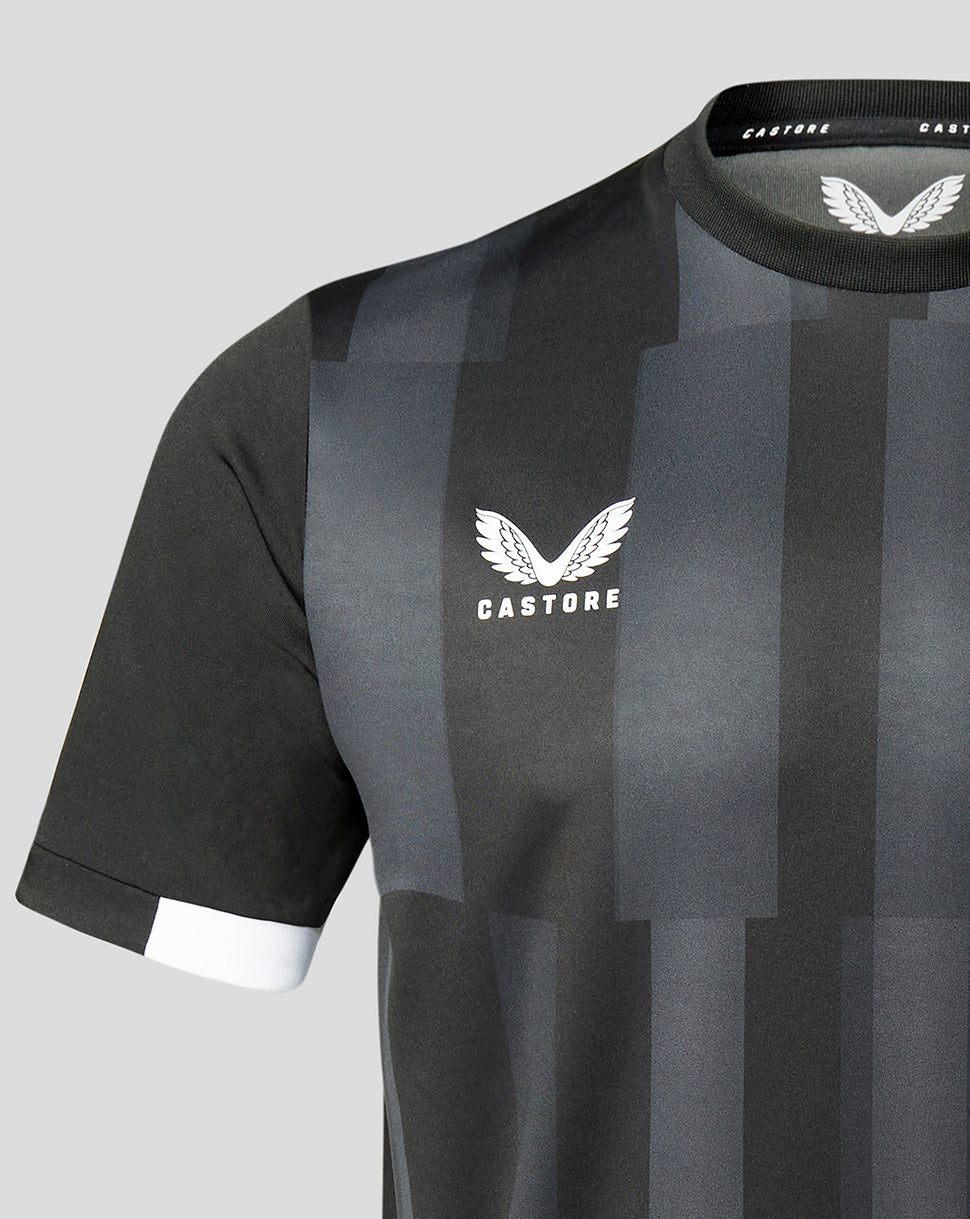 From the commemorative range celebrating the English club’s birthday, the Castore design is in tones of grey and black, offering a modern take on the famous stripes.