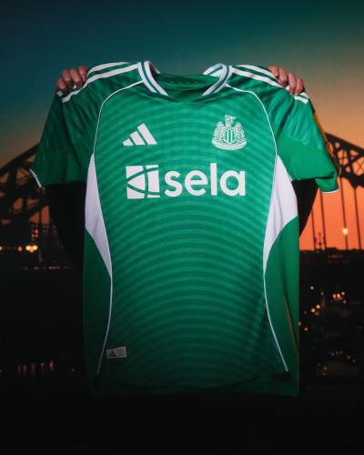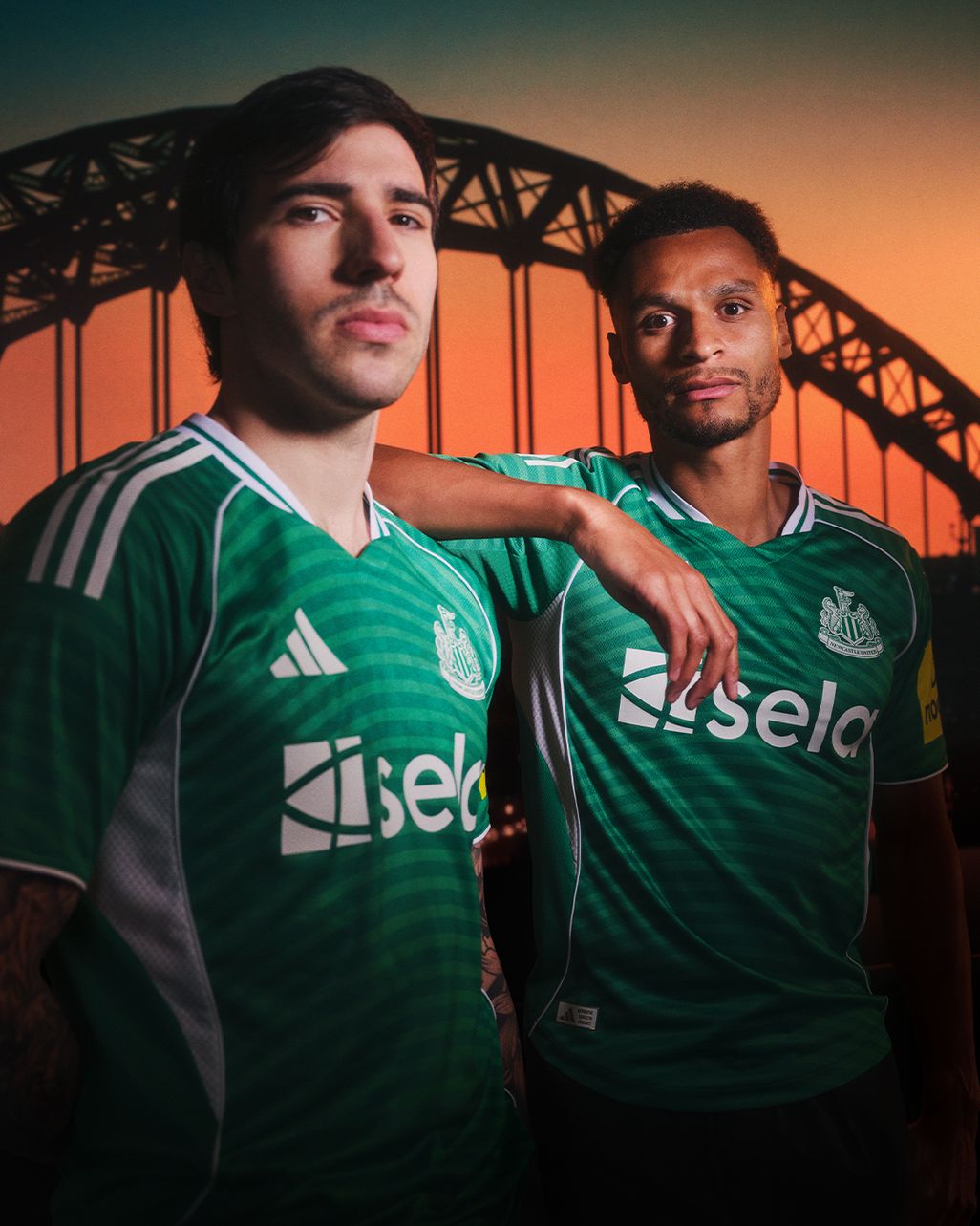Newcastle United have unveiled their new 2025/26 Away kit featuring a green colour scheme, with a graphic design inspired by one of the city's most recognisable landmarks, the Tyne Bridge.