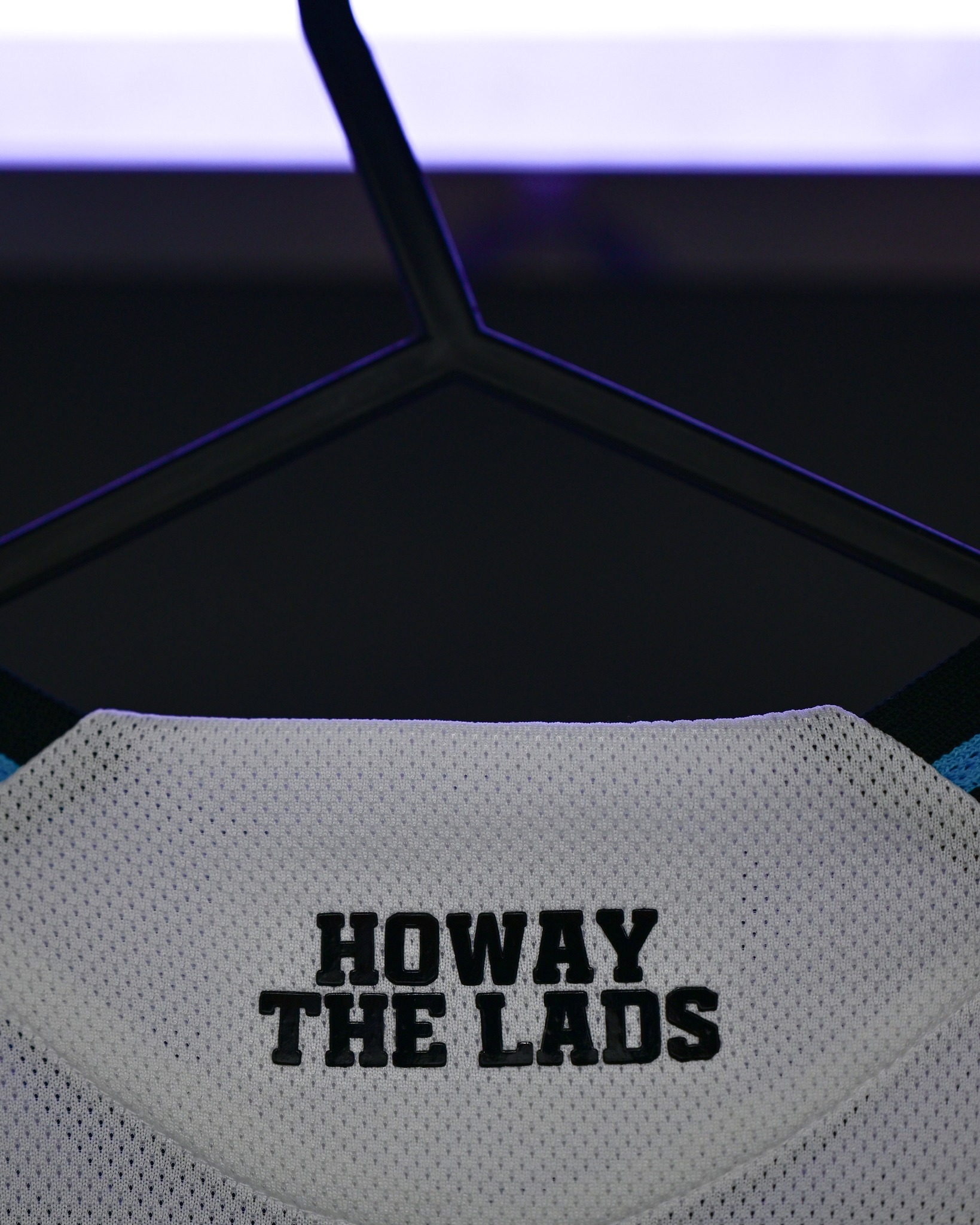 Trimmed in turquoise along the collar, sleeve cuffs and side panels, the shirt also features a full-colour club crest on the chest, adidas branding, and front-of-shirt sponsor Sela. On the reverse, just below the collar, the phrase “Howay the Lads” is placed in bold black.