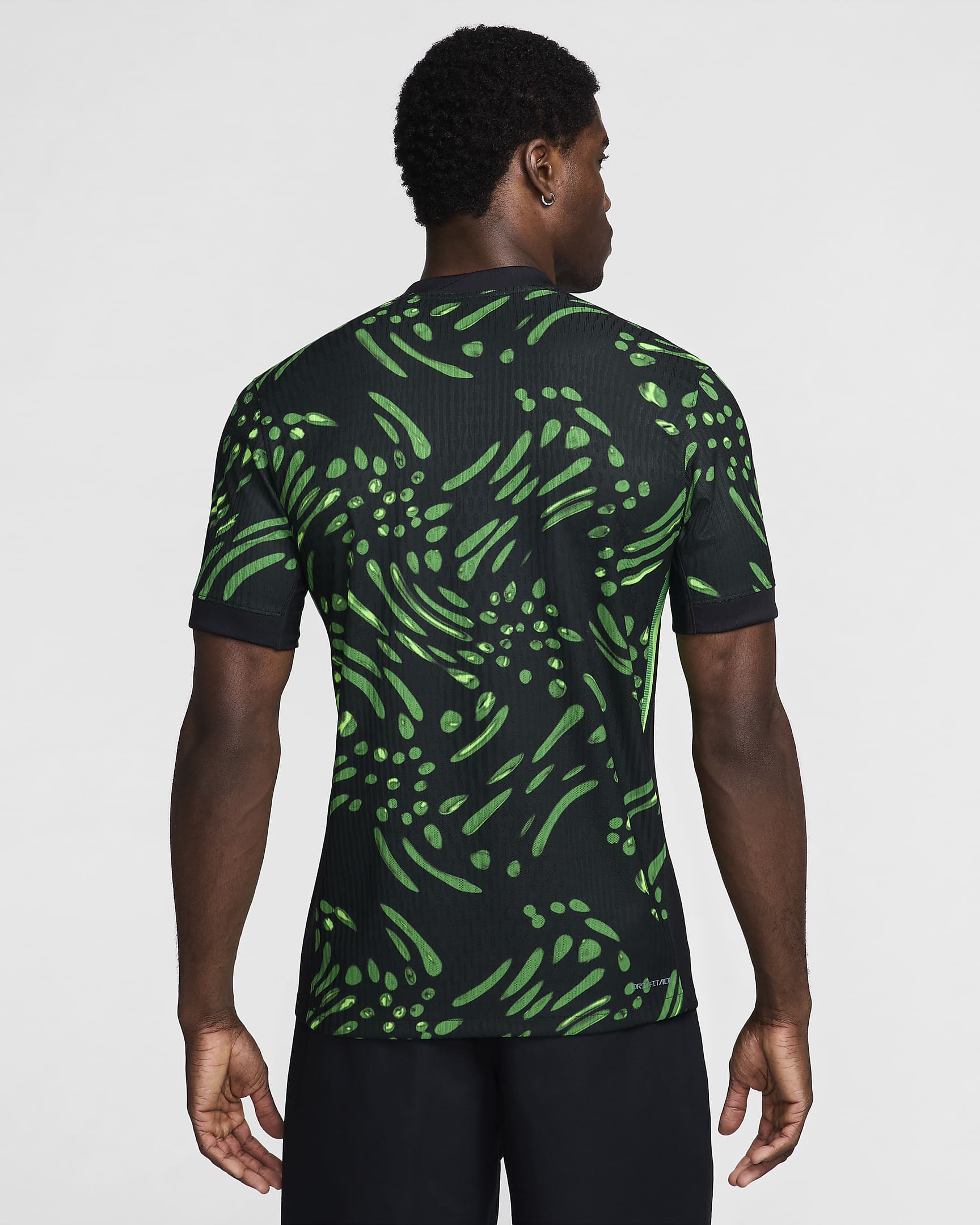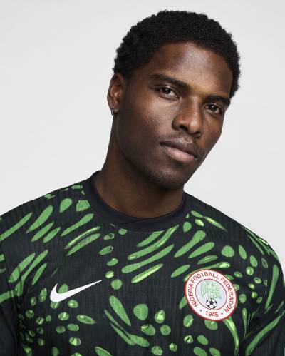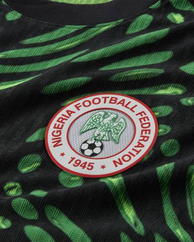 The 2024 primary release for the Super Eagles is in black and “Lucky Green”, with the patterning a nod to the creativity in the “Naija” culture.