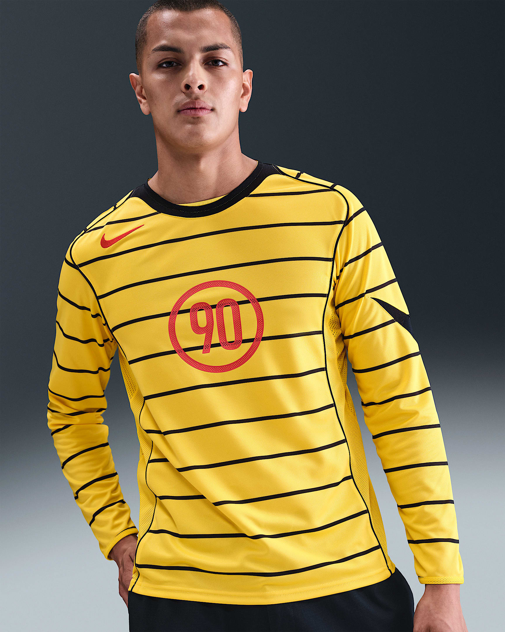 Each shirt is constructed from lightweight, breathable fabric for comfort on and off the pitch, incorporating Nike’s Dri-FIT technology. The familiar circular “90” logo returns across the chest, complemented by the signature Swoosh on the shoulder.
