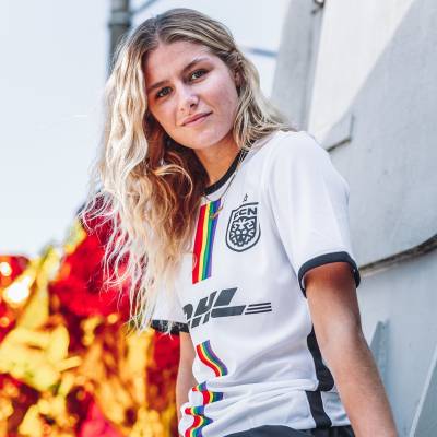 Copenhagen Pride Week is honoured in the new white 2023-24 Nike design through the inclusion of rainbow-flag colouring and the release was worn, complete with partner logos and the crest in black, in the defeat to Silkeborg.