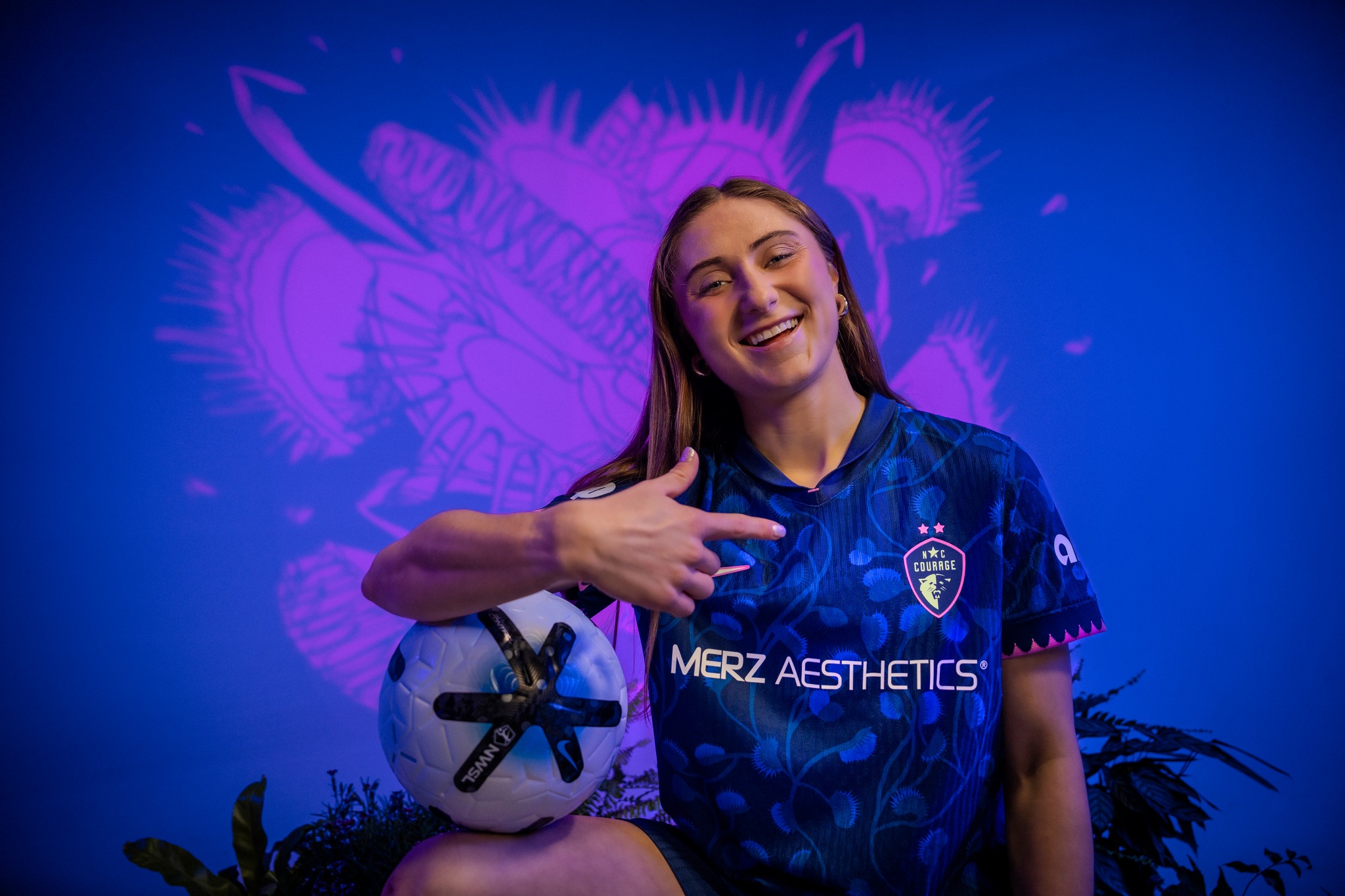 The front of the shirt carries the Merz Aesthetics sponsor logo in white, continuing the partnership for 2026. A small Esse Quam Videri inscription is placed near the lower hem, referencing the state motto of North Carolina. Constructed using Nike performance fabric, the North Carolina Courage football shirt is completed with coordinating dark blue shorts and socks for NWSL fixtures at First Horizon Stadium at WakeMed Soccer Park.