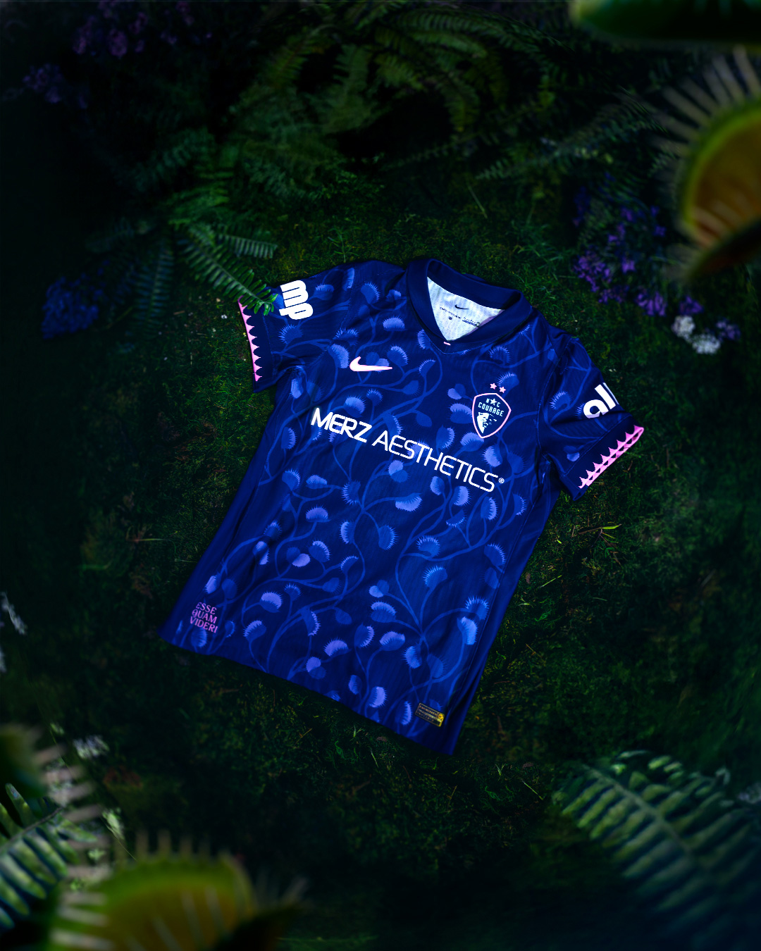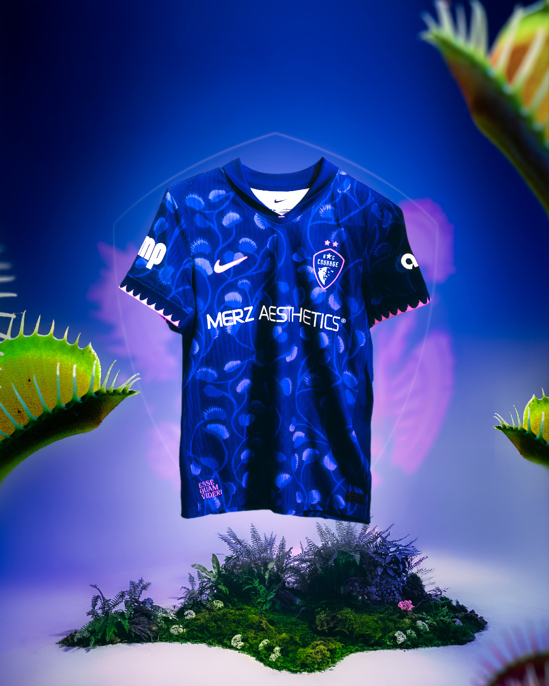 The new North Carolina Courage jersey introduces a Blue Void base, covered with an all over tonal graphic inspired by the form of the Venus flytrap, a plant native to North Carolina. Flowing botanical shapes are reworked with sharper, angular detailing across the body and sleeves, creating a layered pattern in multiple shades of blue.