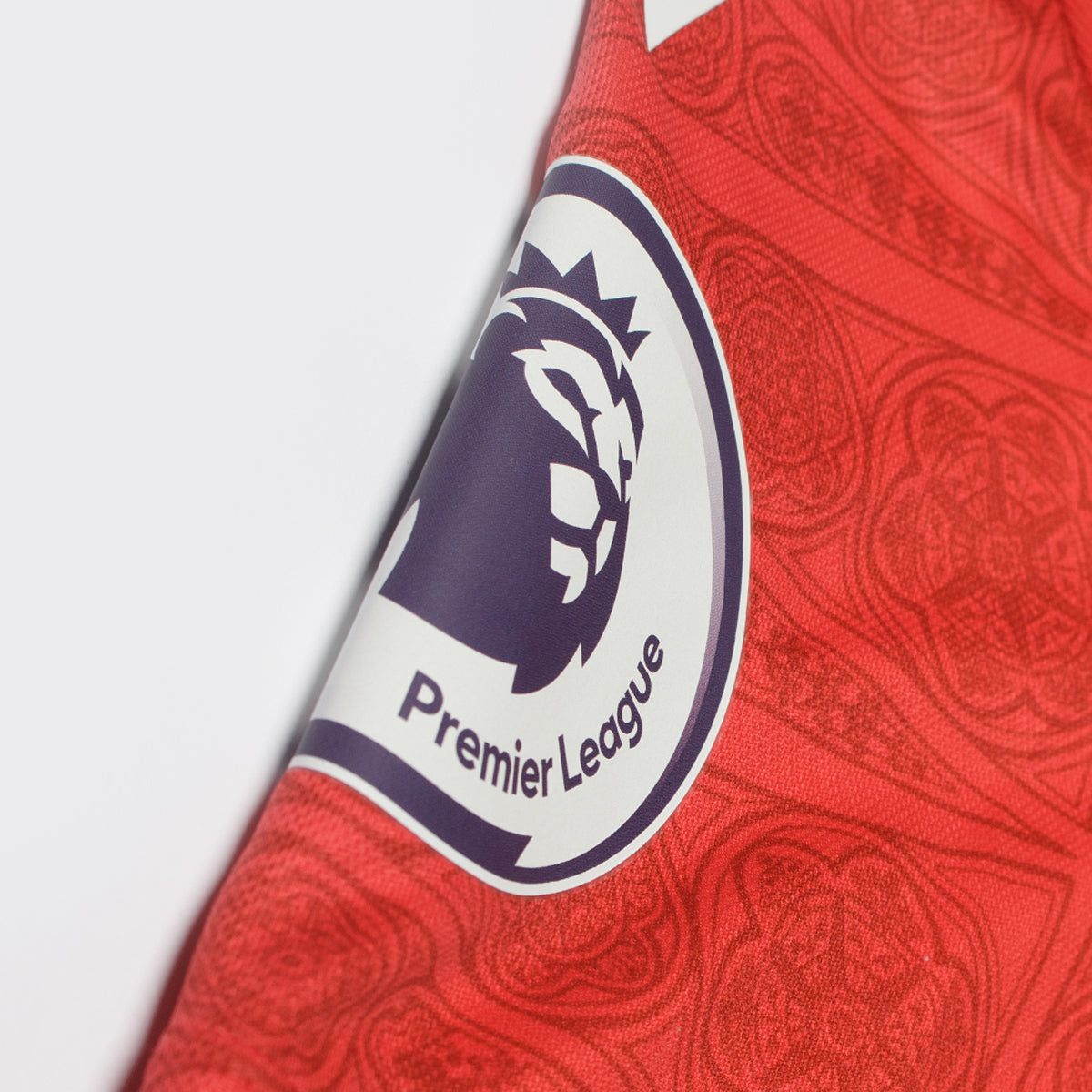 The two-tone Trent Bridge pattern is featured on the red shirt sleeves and it is complemented, for the first time in 23 years, by Premier League badge.