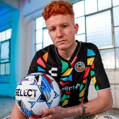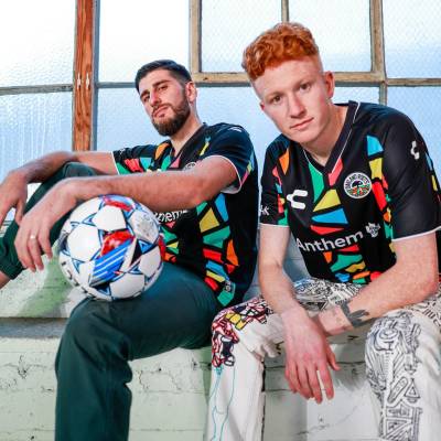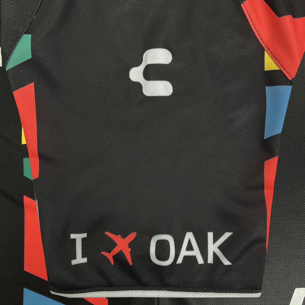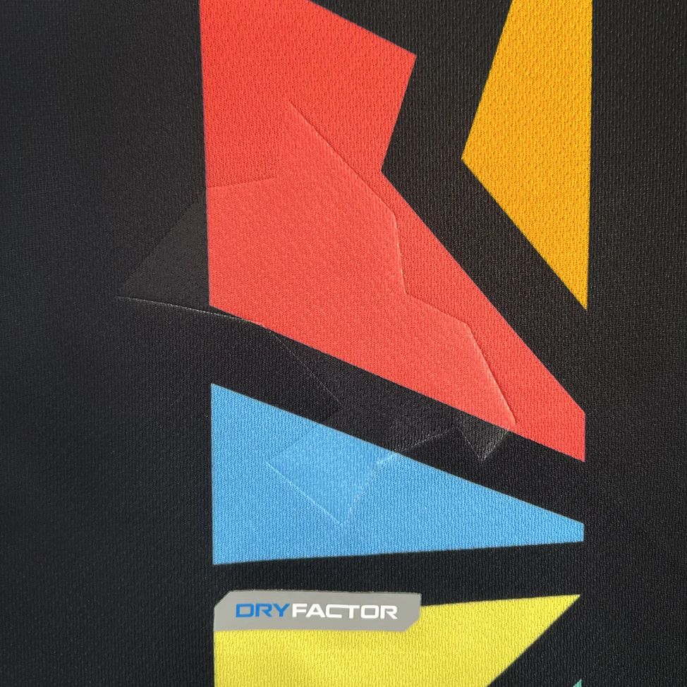This primary kit by Charly for 2024 features a black backdrop adorned with a vibrant array of geometric patterns. These patterns, representing a medley of colours, stand as a testament to the club's commitment to diversity and unity, mirroring the inclusive ethos of both the club and its wider community.