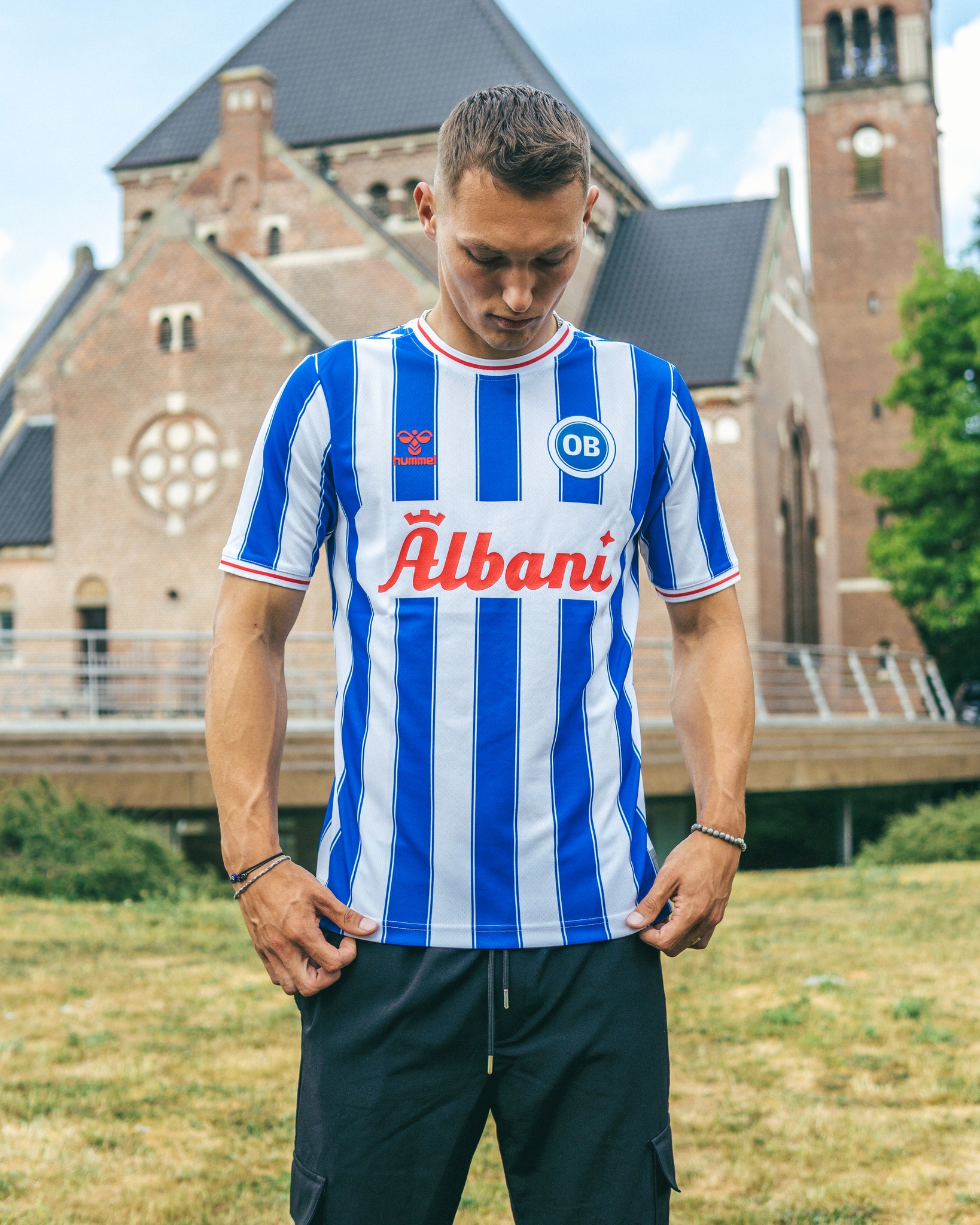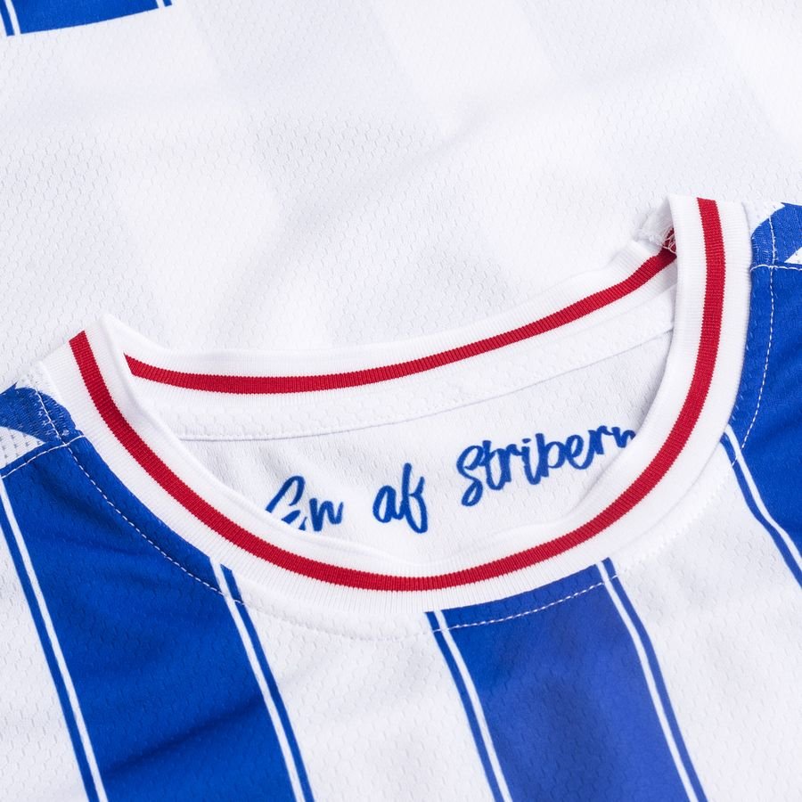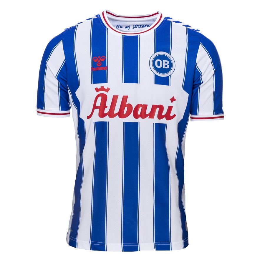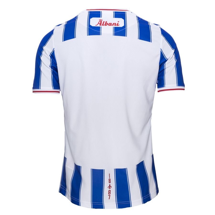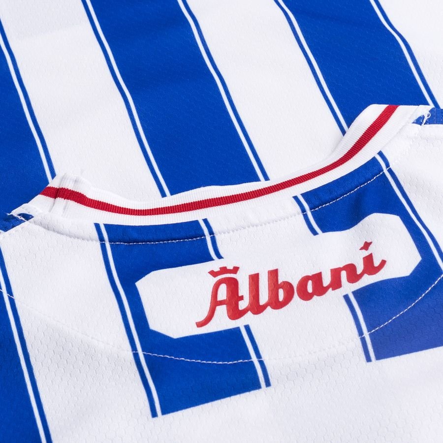 With blue and white trimmed stripes to the trunk, the logos of supplier Hummel and familiar sponsor Albani appear in red on the new release - matching the neck and cuff trim - and Hummel’s chevrons are present and correct on the shoulders.