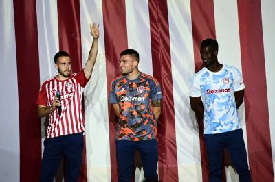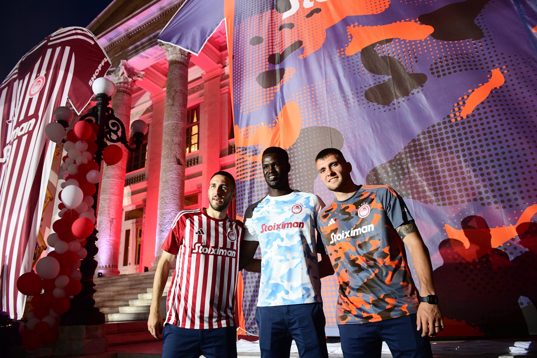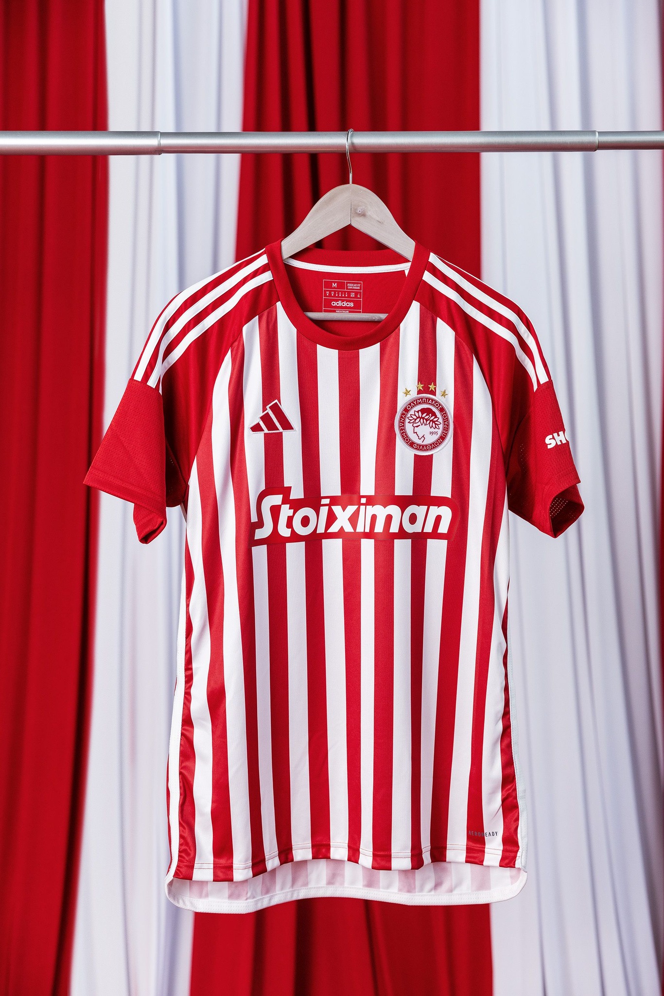 These are the new home, away and third shirts, by adidas, for famous Athens-based Super League Greece side Olympiacos.